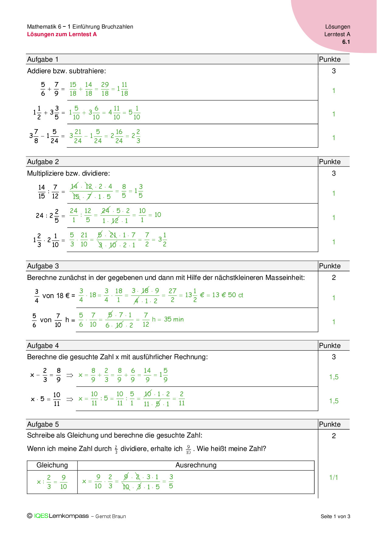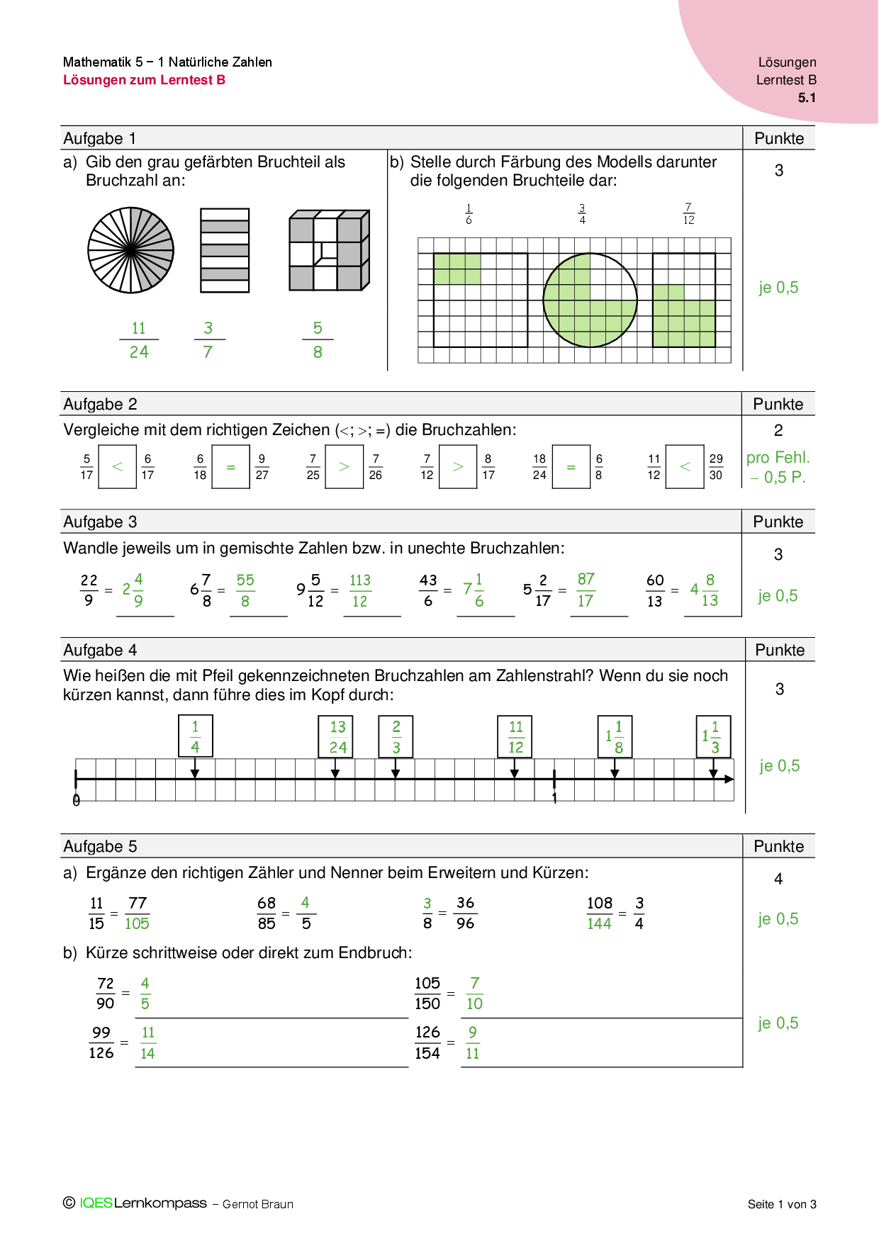 6.1 Einführung Bruchzahlen – Lösungen zum Lerntest B