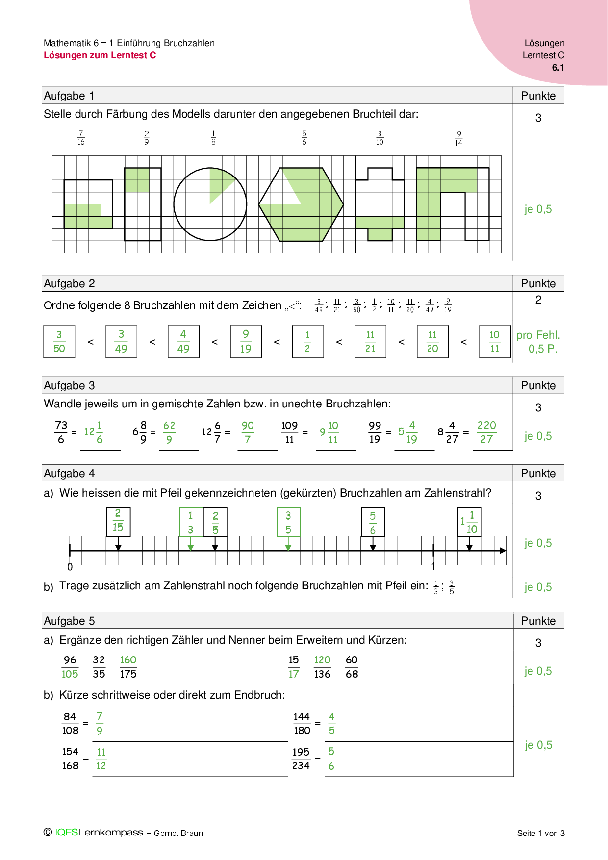 6.1 Einführung Bruchzahlen – Lösungen zum Lerntest C