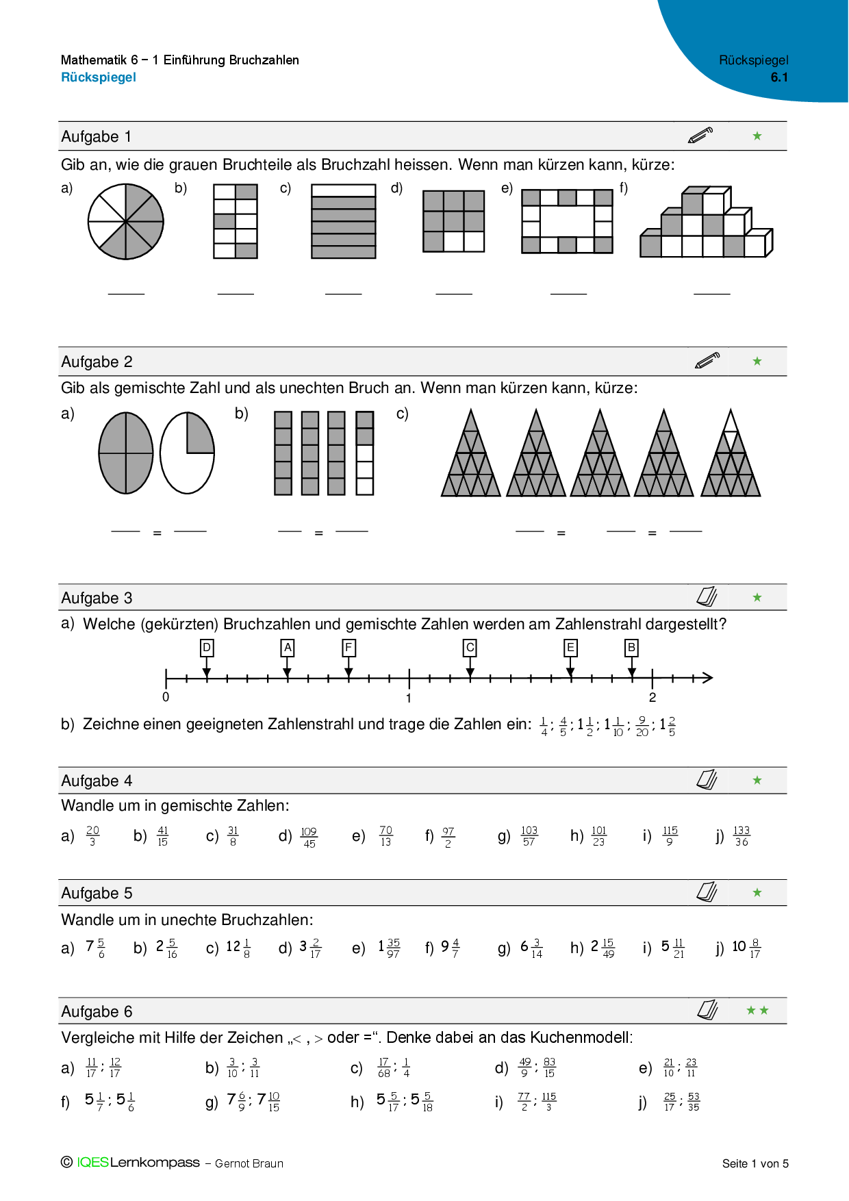 6.1 Einführung Bruchzahlen – Rückspiegel