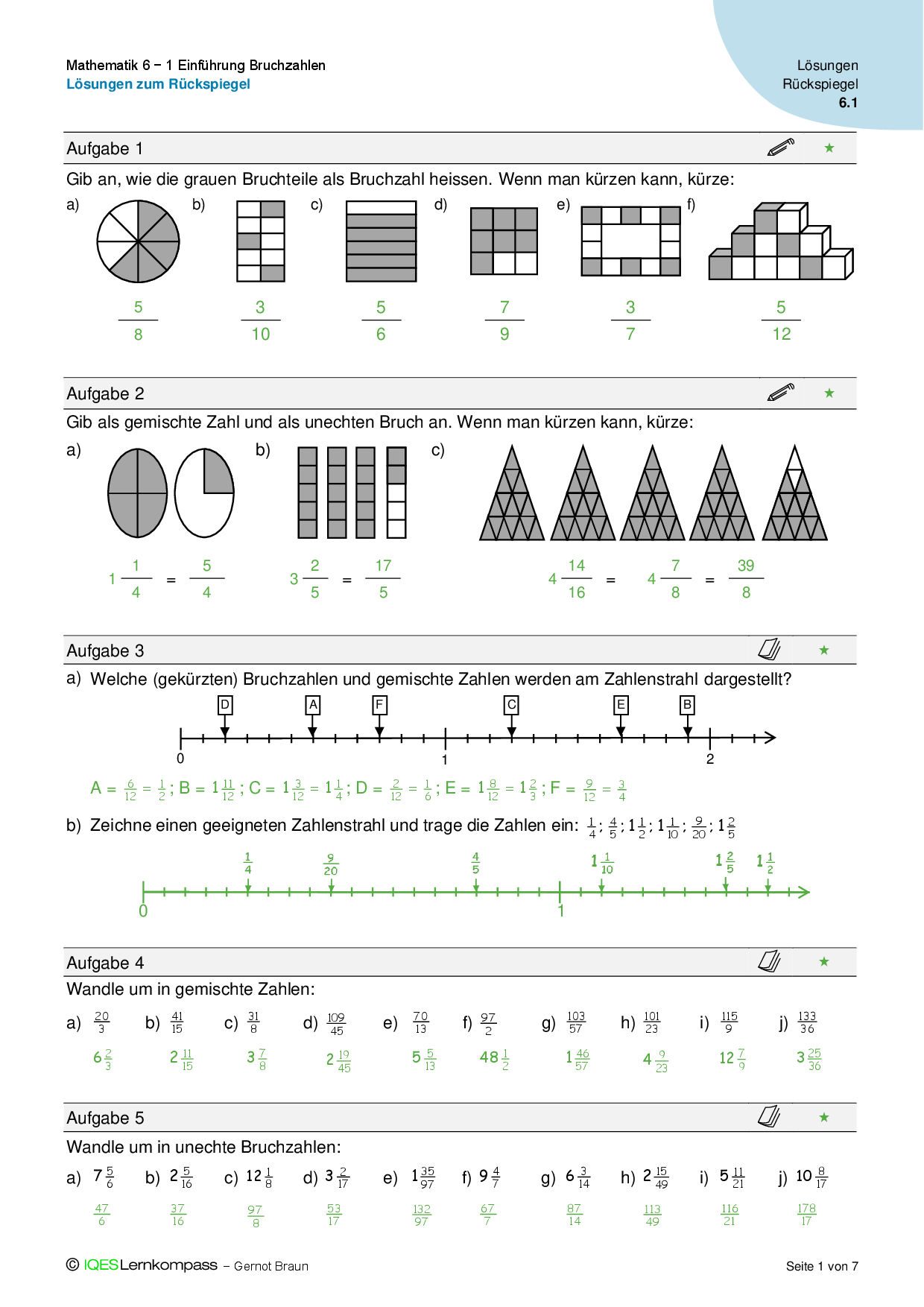 6.1 Einführung Bruchzahlen – Lösungen zum Rückspiegel