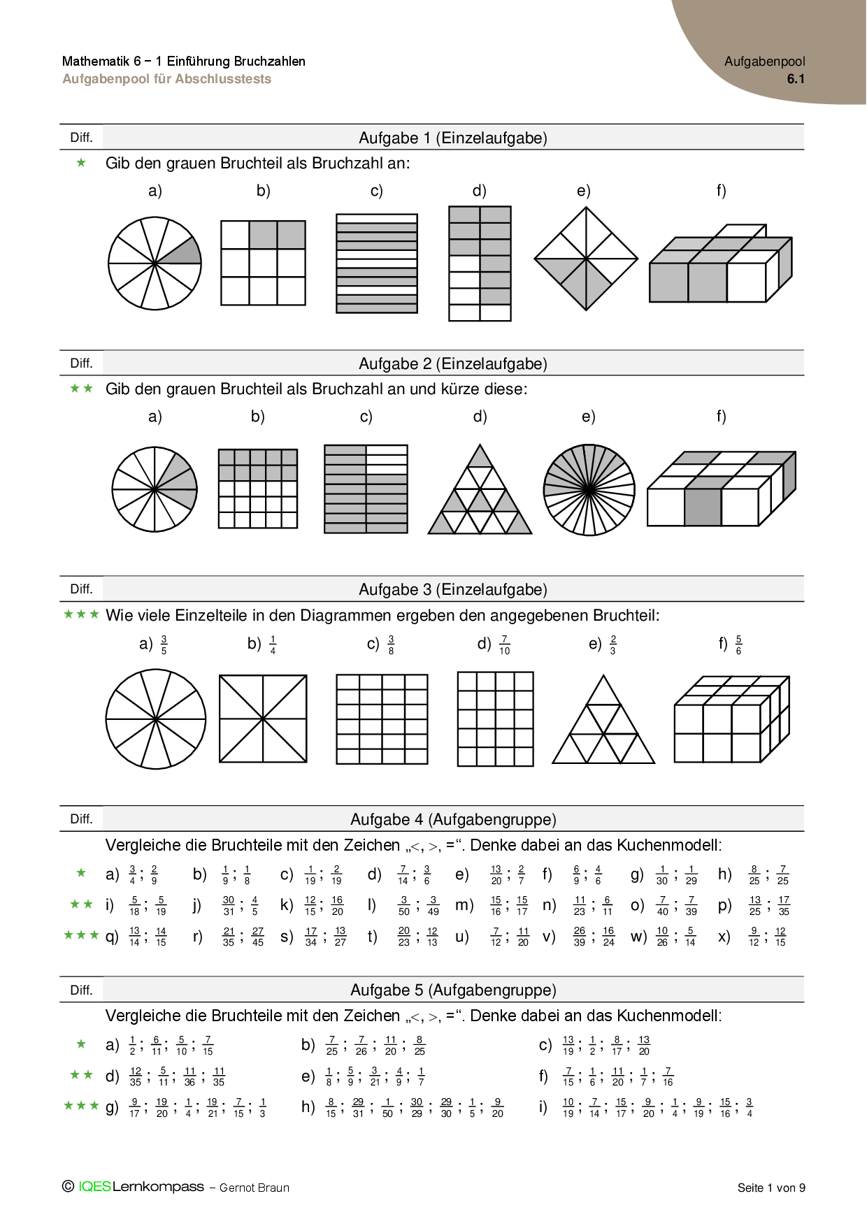 6.1 Einführung Bruchzahlen – Aufgabenpool für Abschlusstests