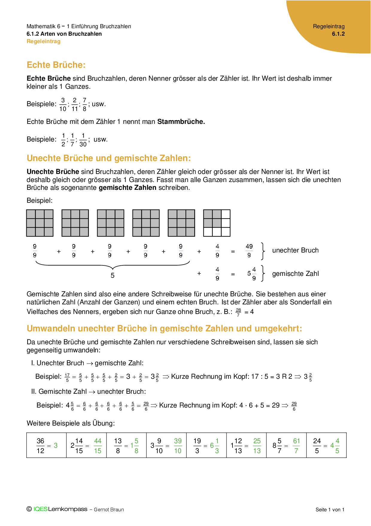 6.1.1 Bruchteile und Bruchzahlen – Regeleintrag