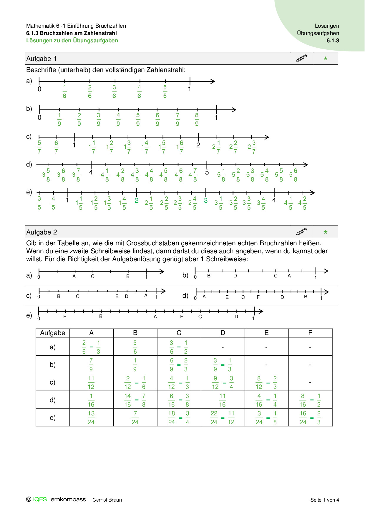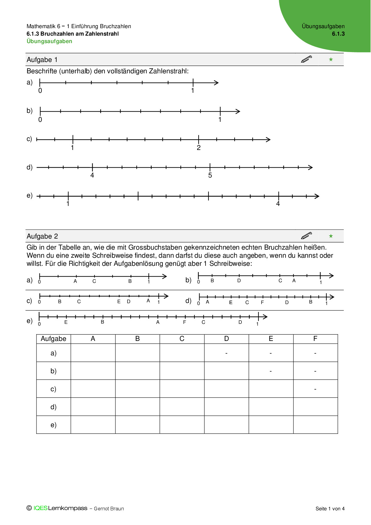 6.1.3 Bruchzahlen am Zahlenstrahl – Übungsaufgaben mit Lösungen