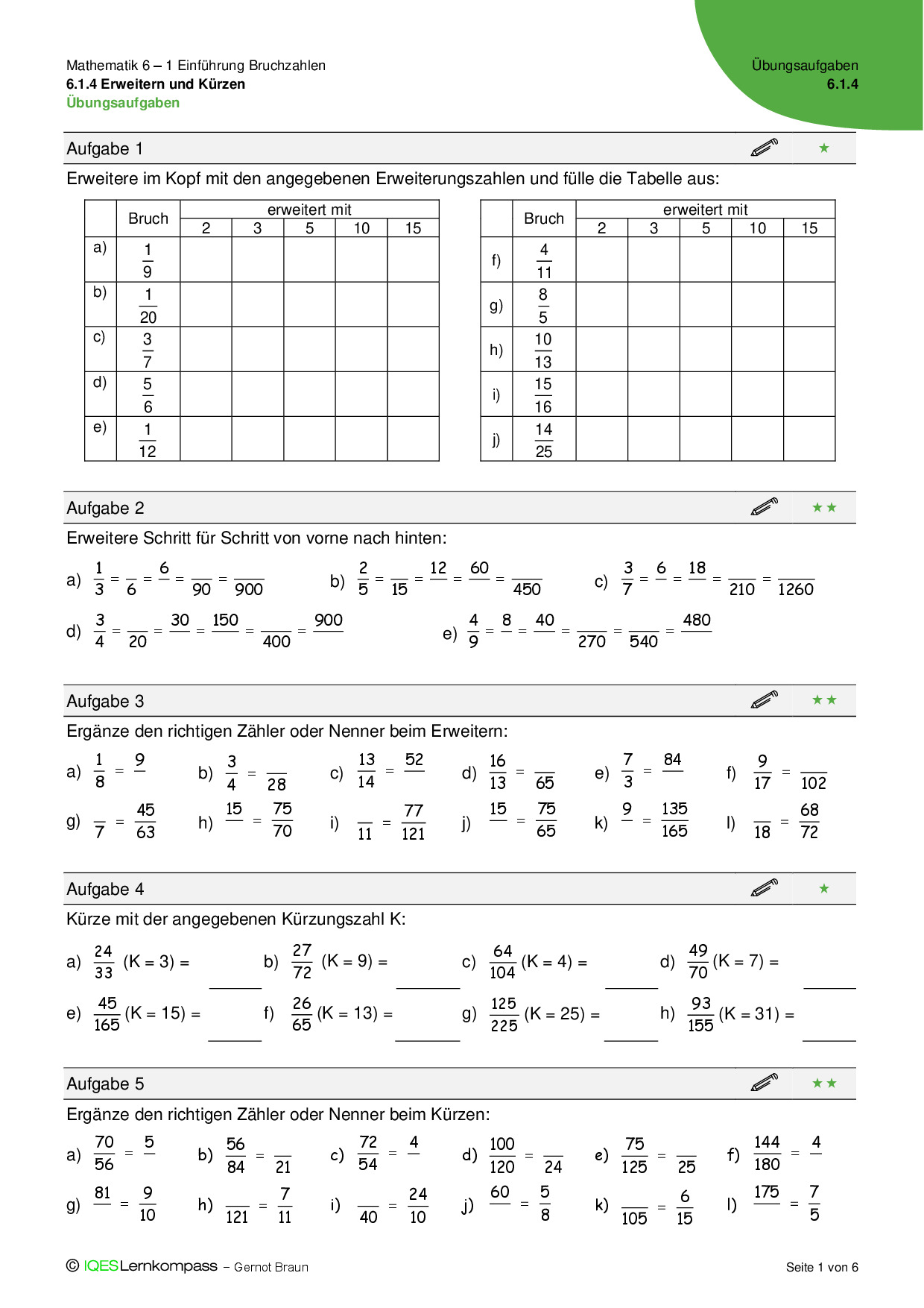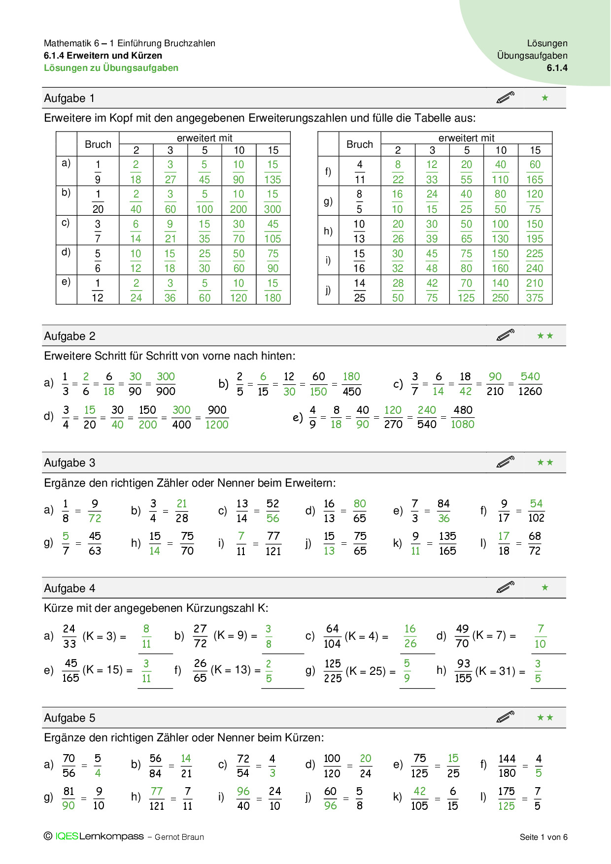 6.1.4 Erweitern und Kürzen – Übungsaufgaben mit Lösungen