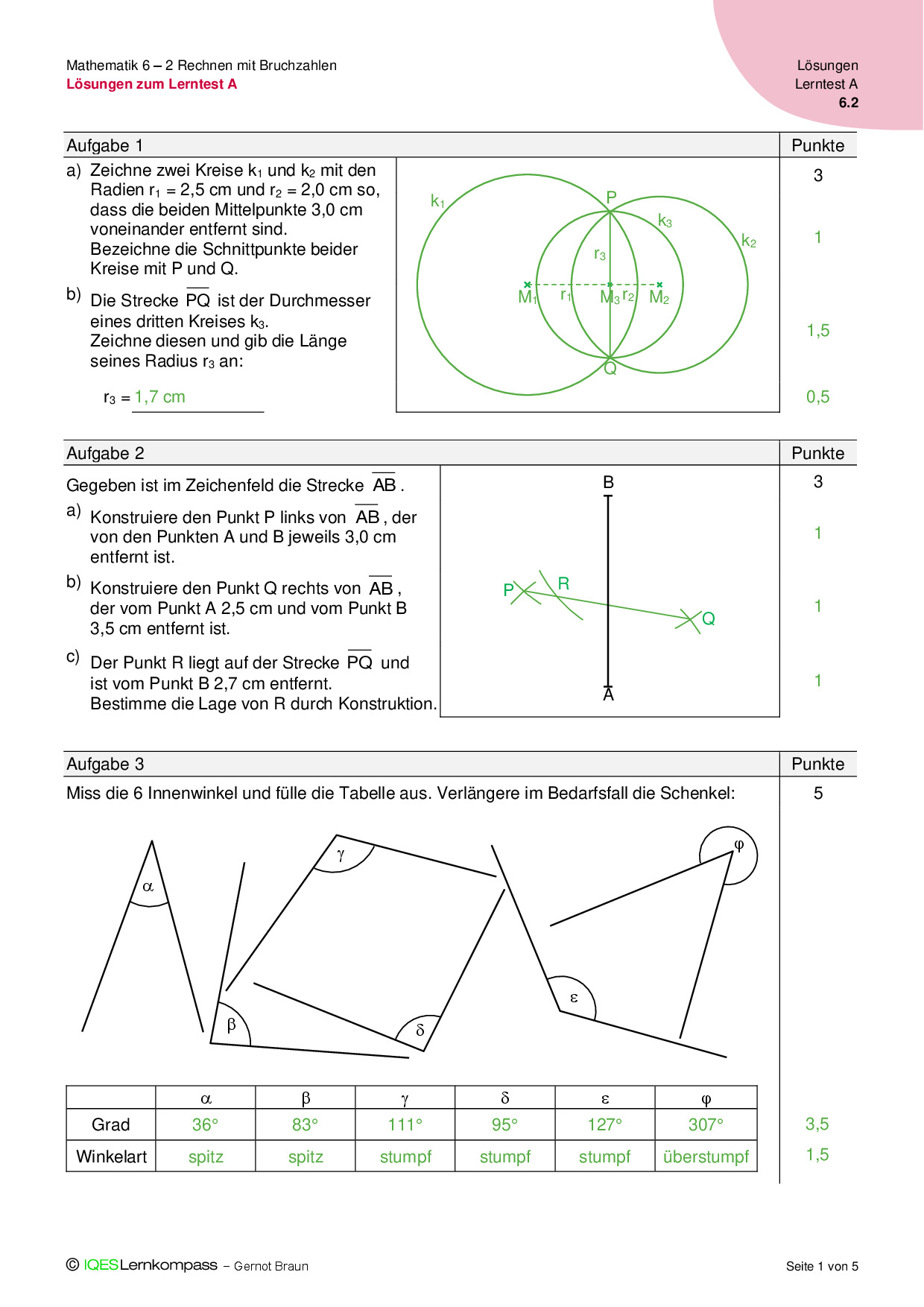 6.3 Kreis und Winkel – Lösungen zum Lerntest A