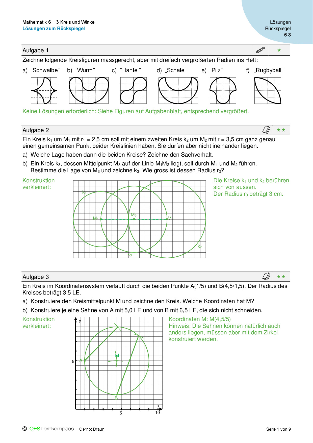 6.3.2 Kreis und Kreiskonstruktionen – Übungsaufgaben mit Lösungen