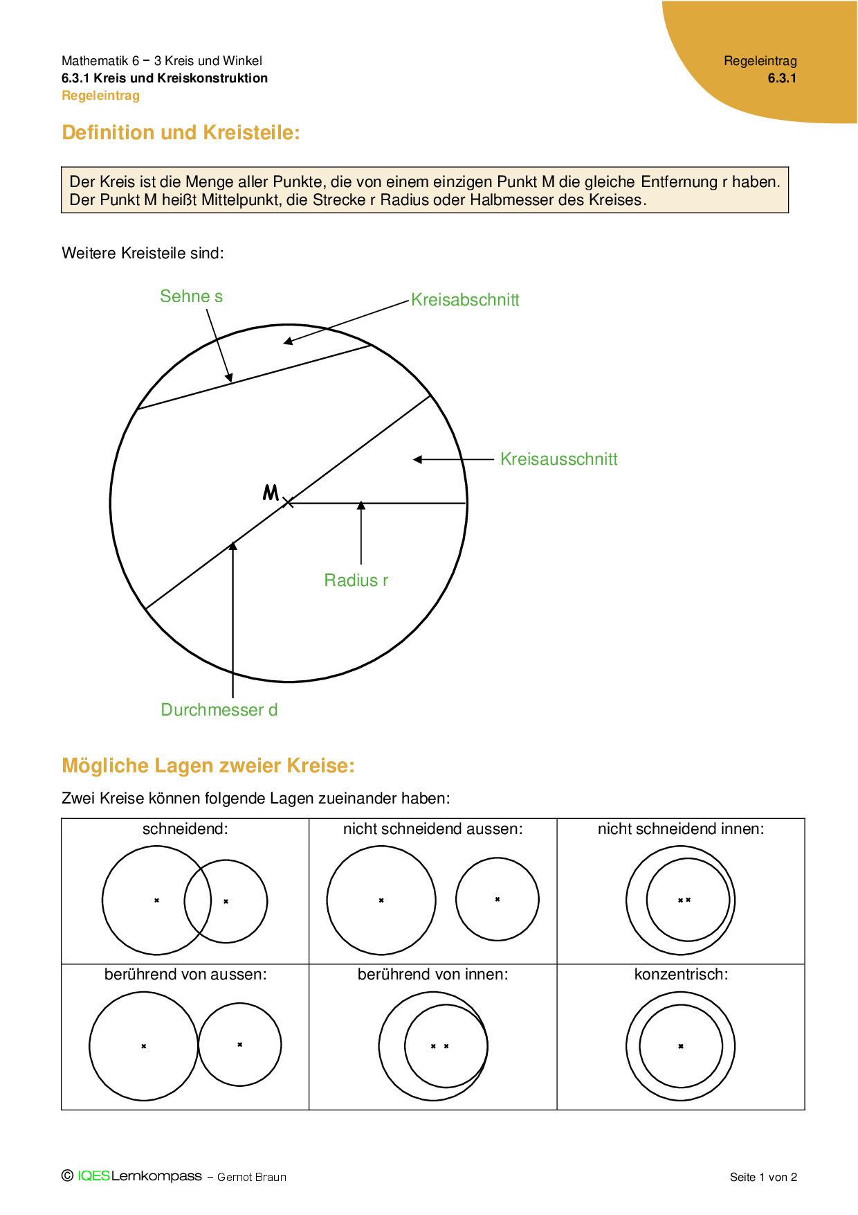 6.3.1 Kreis und Kreiskonstruktionen – Regeleintrag