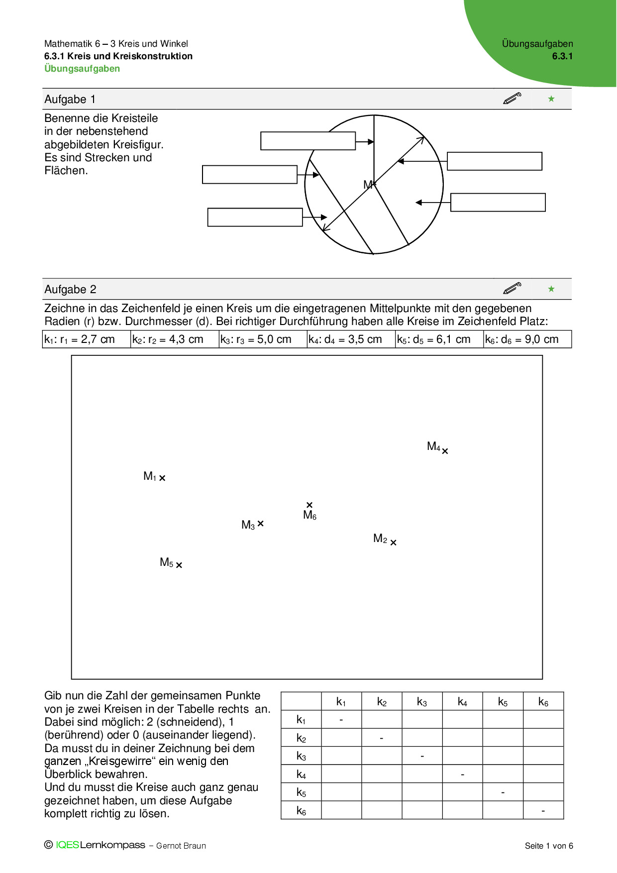 6.3.1 Kreis und Kreiskonstruktionen – Übungsaufgaben mit Lösungen