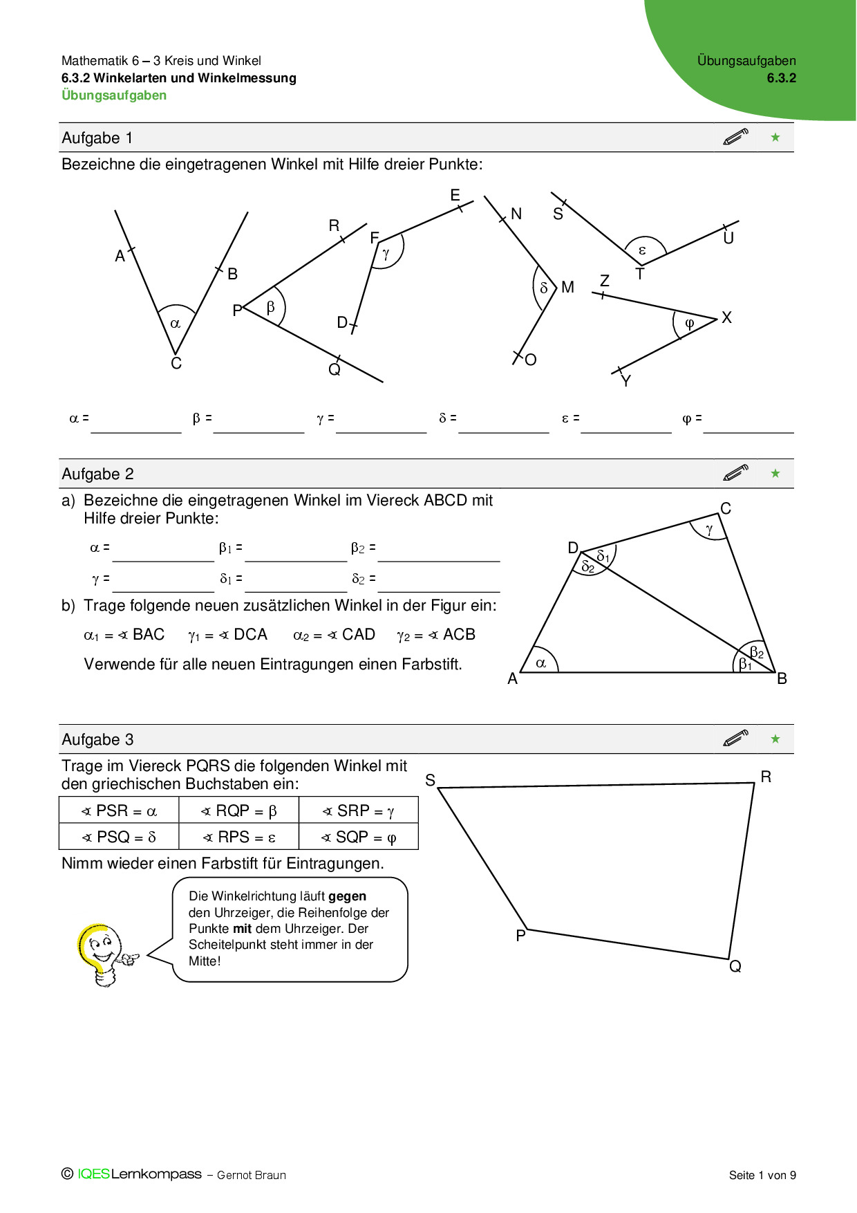 - Ich kann sämtliche Winkelarten nennen und zuordnen.