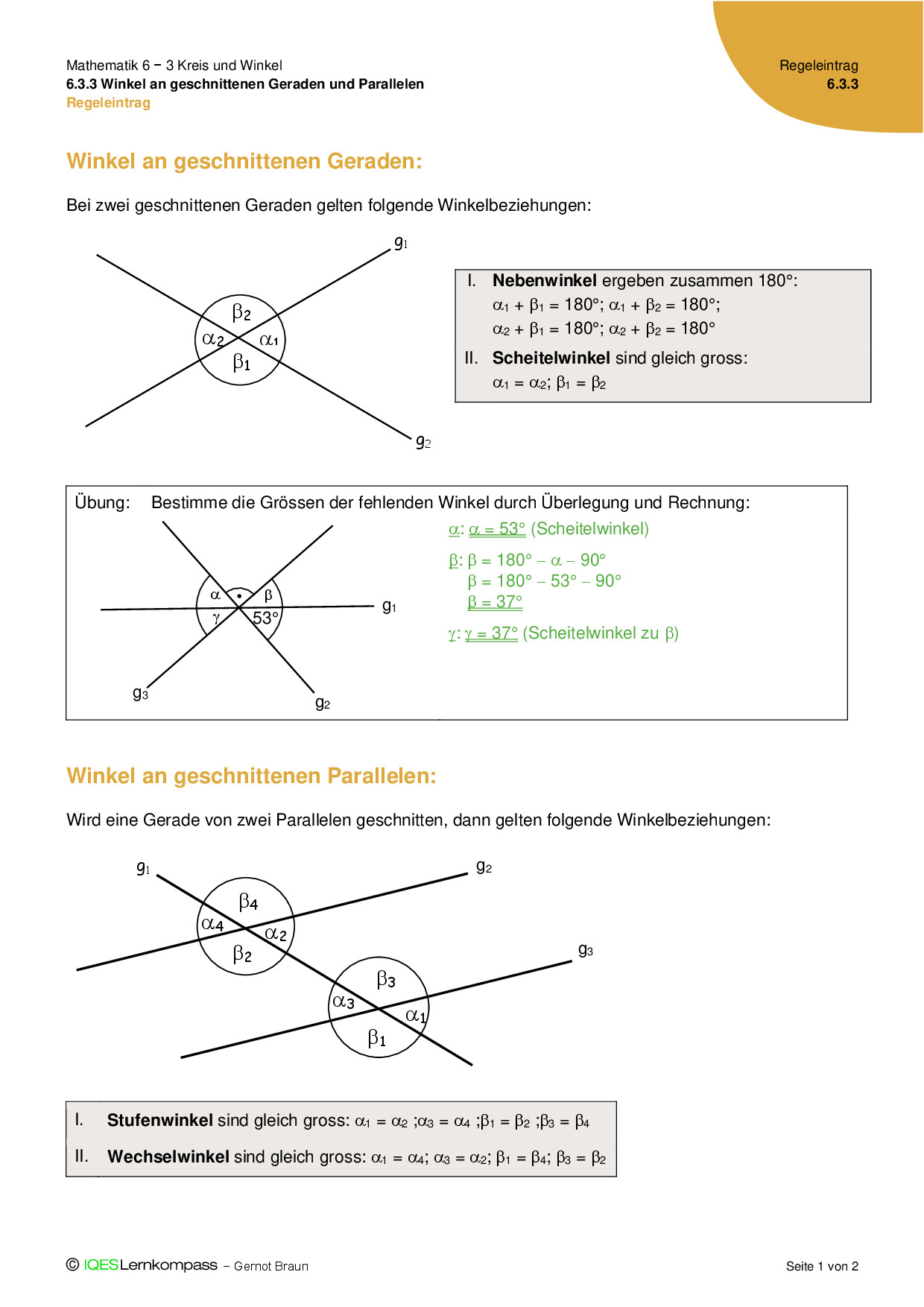 6.3.3 Winkel an geschnittenen Geraden und Parallelen – Regeleintrag