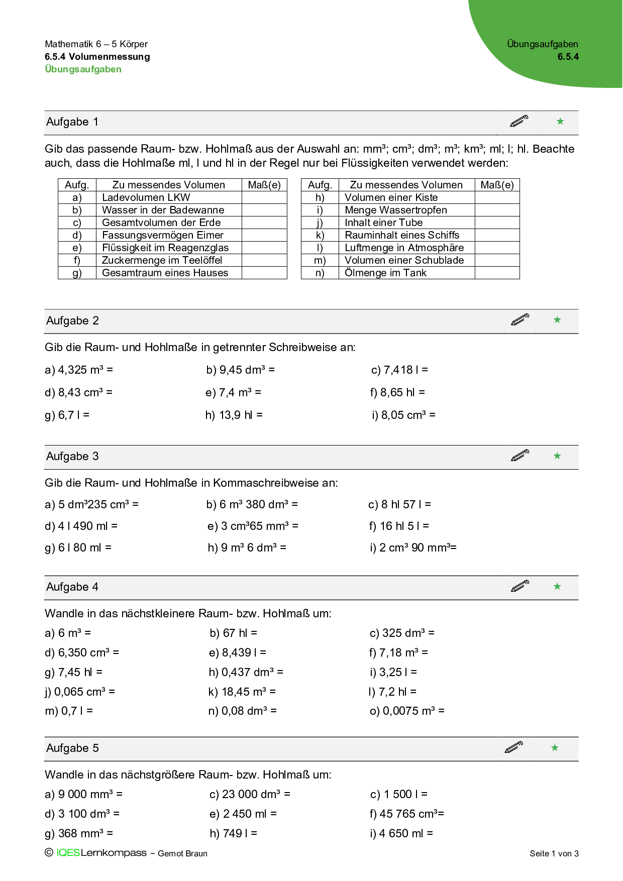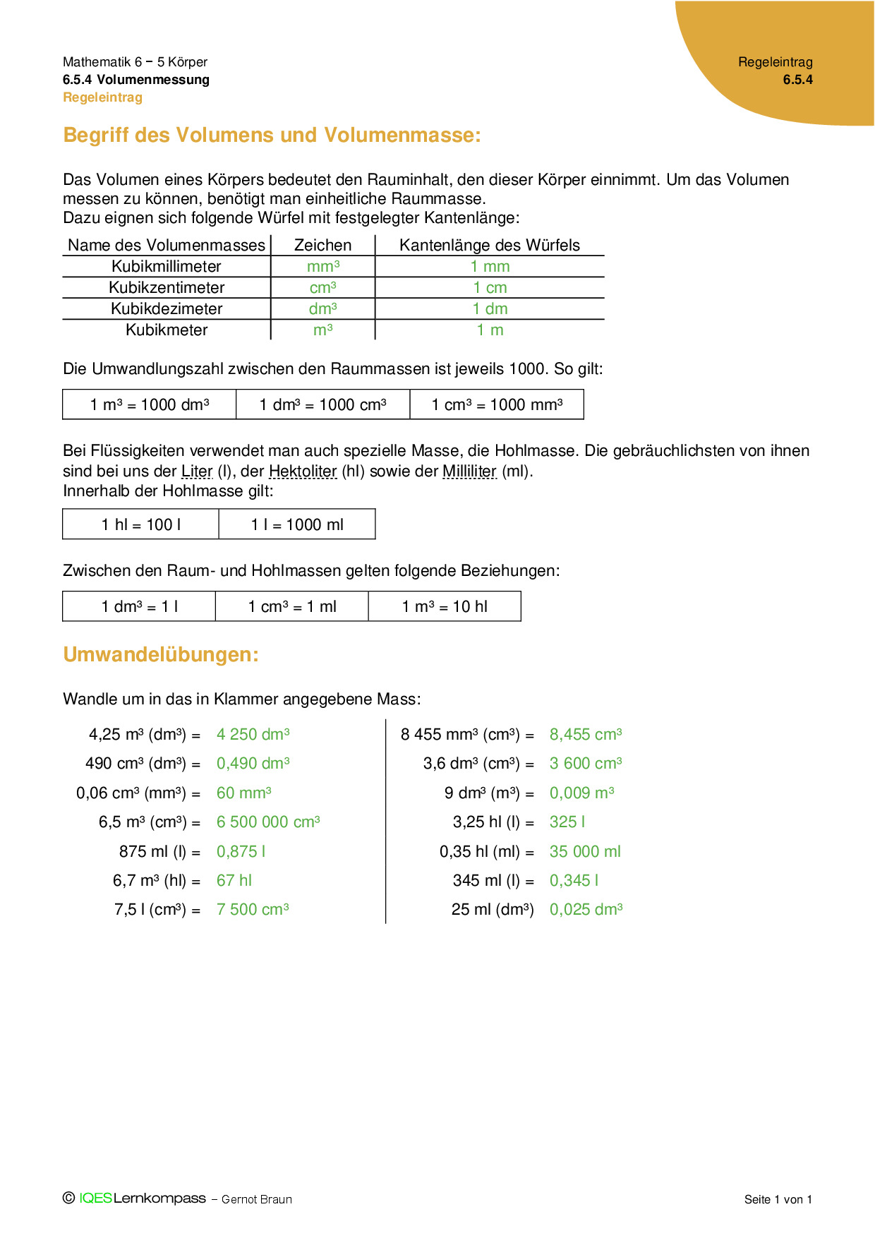 - Ich kann die Volumeneinheiten aufzählen und definieren.