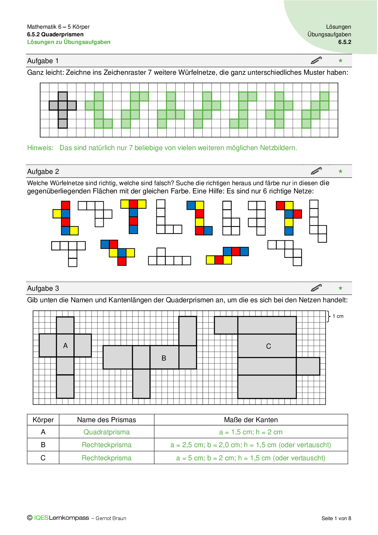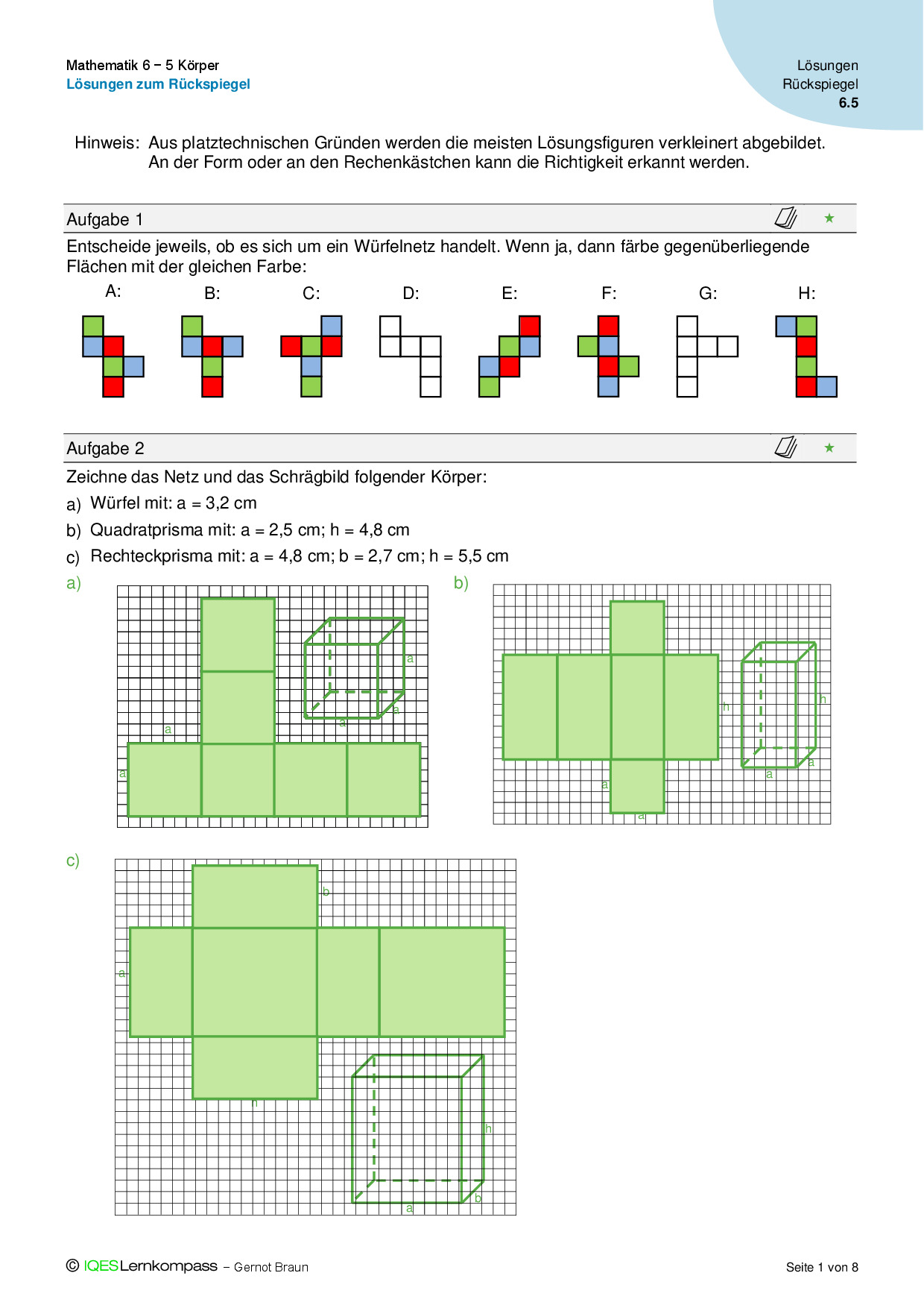 6.5 Körper – Lösungen zum Lerntest A