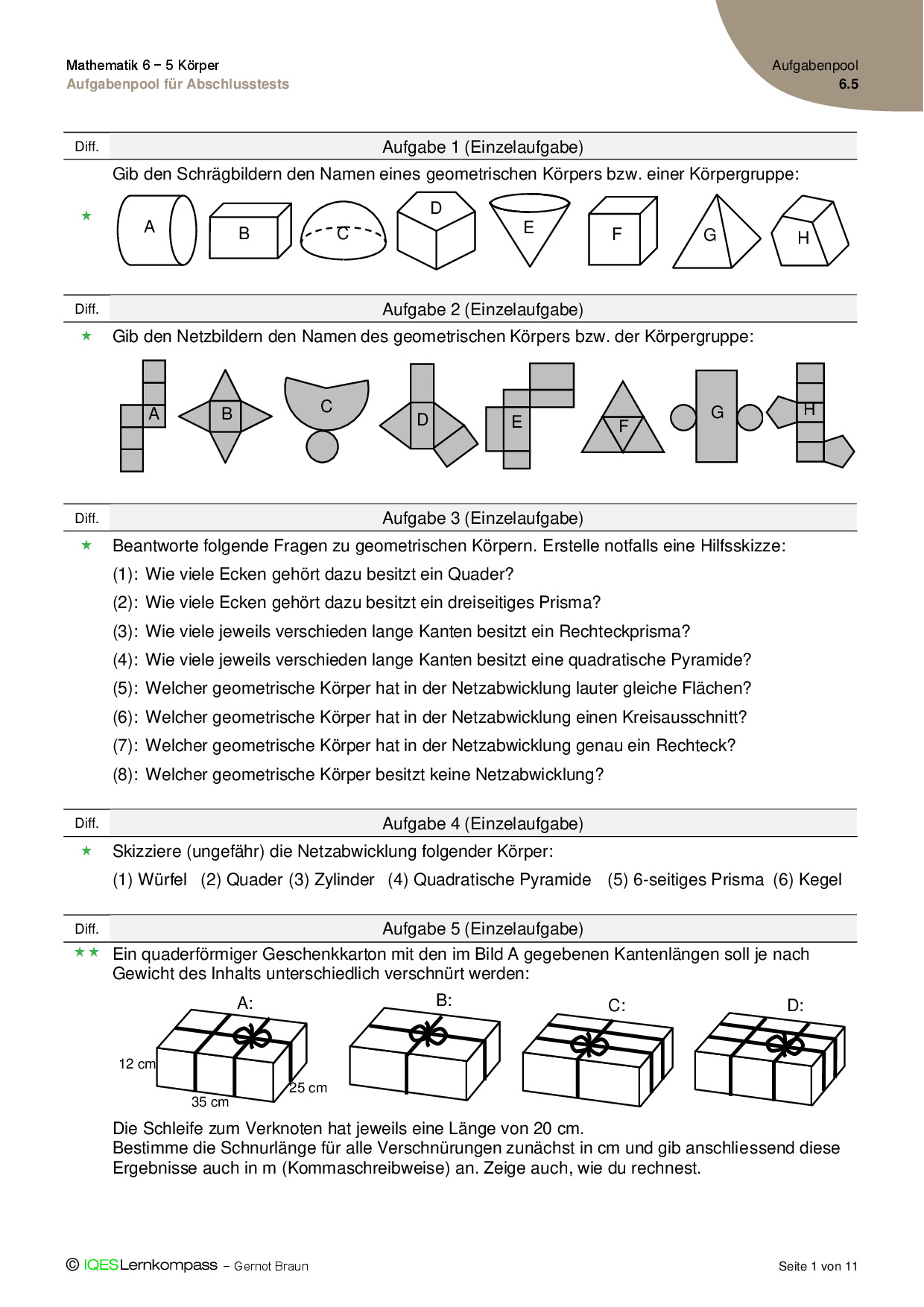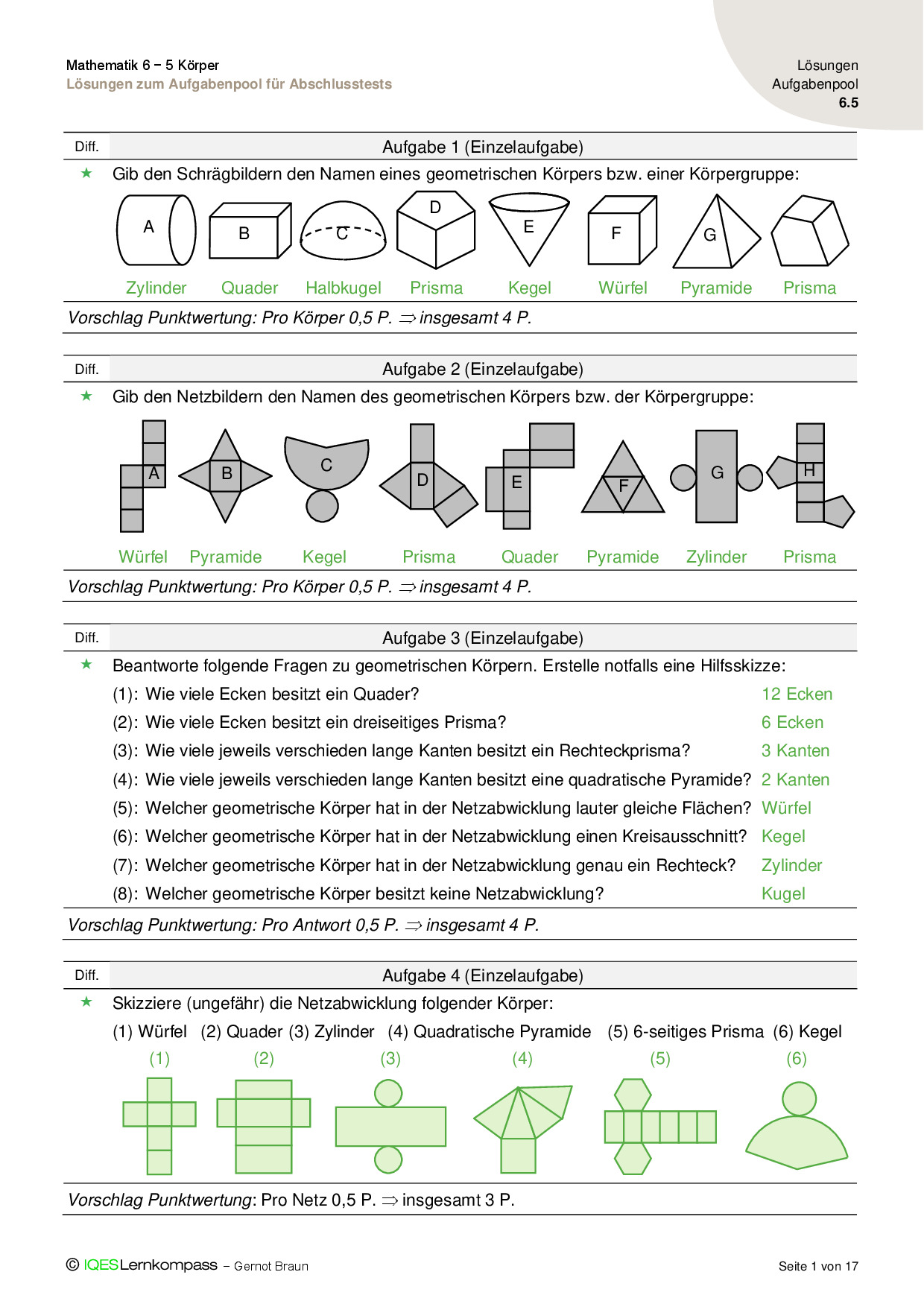 6.5 Körper – Lösungen zum Aufgabenpool für Abschlusstests