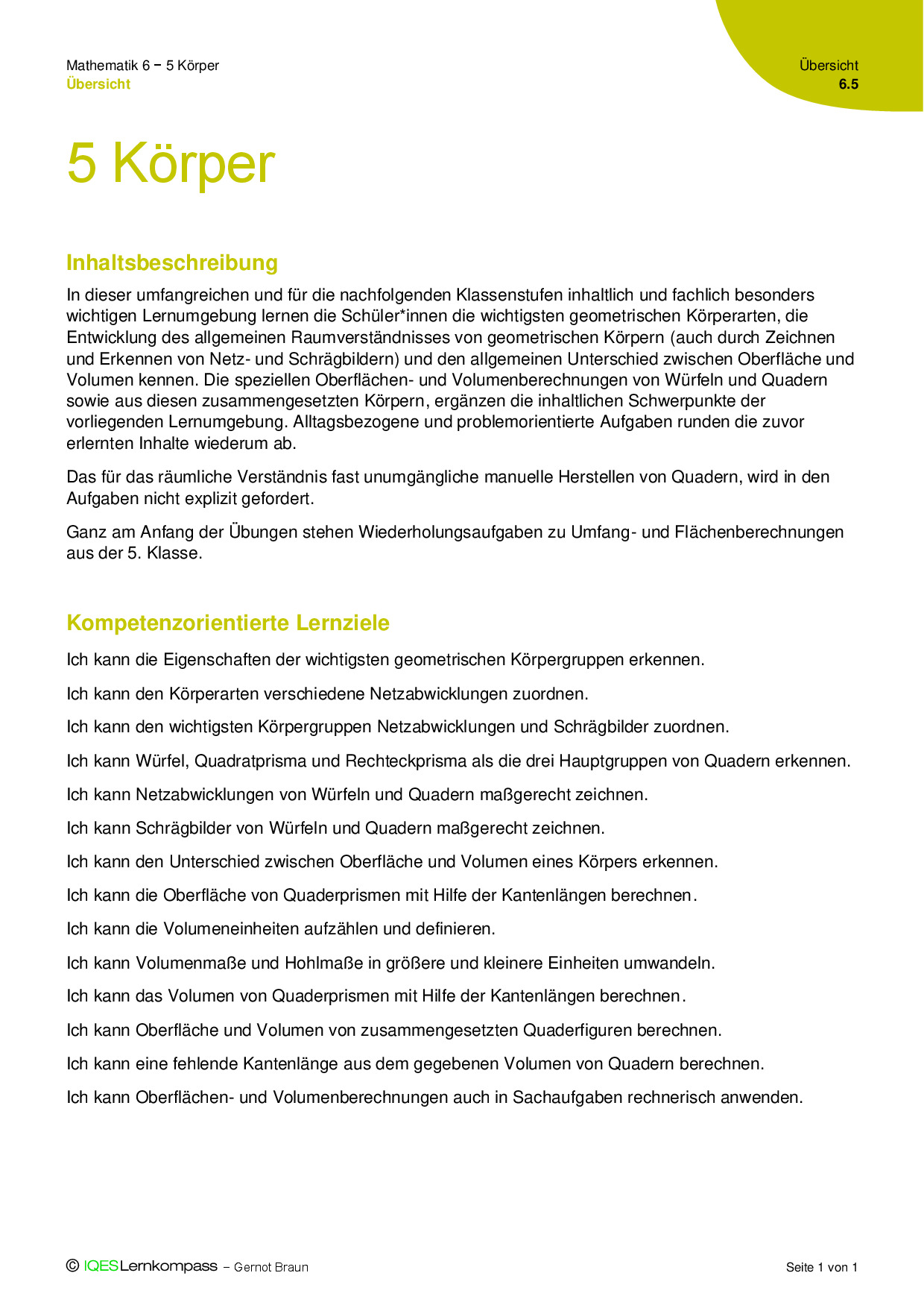 Lernziele und Inhalte: 6.5 Körper