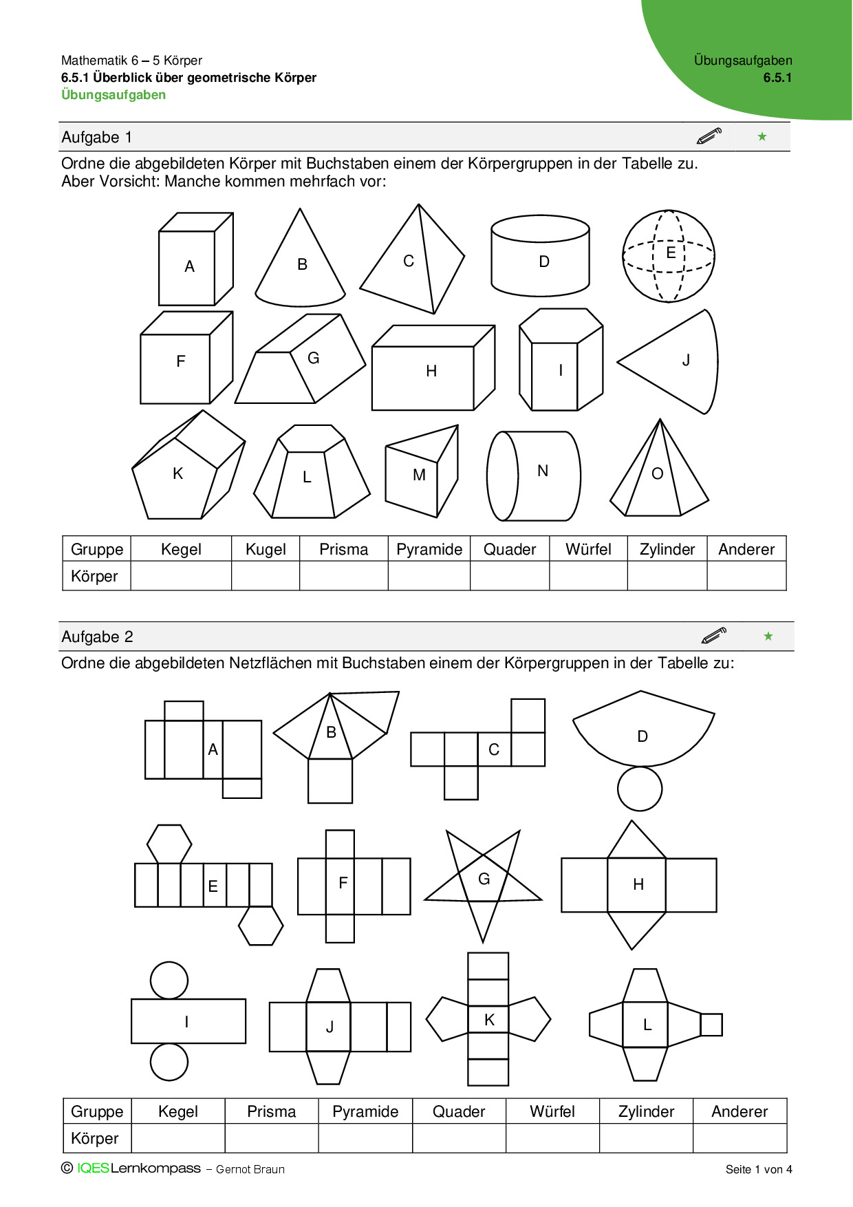 6.5.1 Überblick über geometrisch Körper – Übungsaufgaben