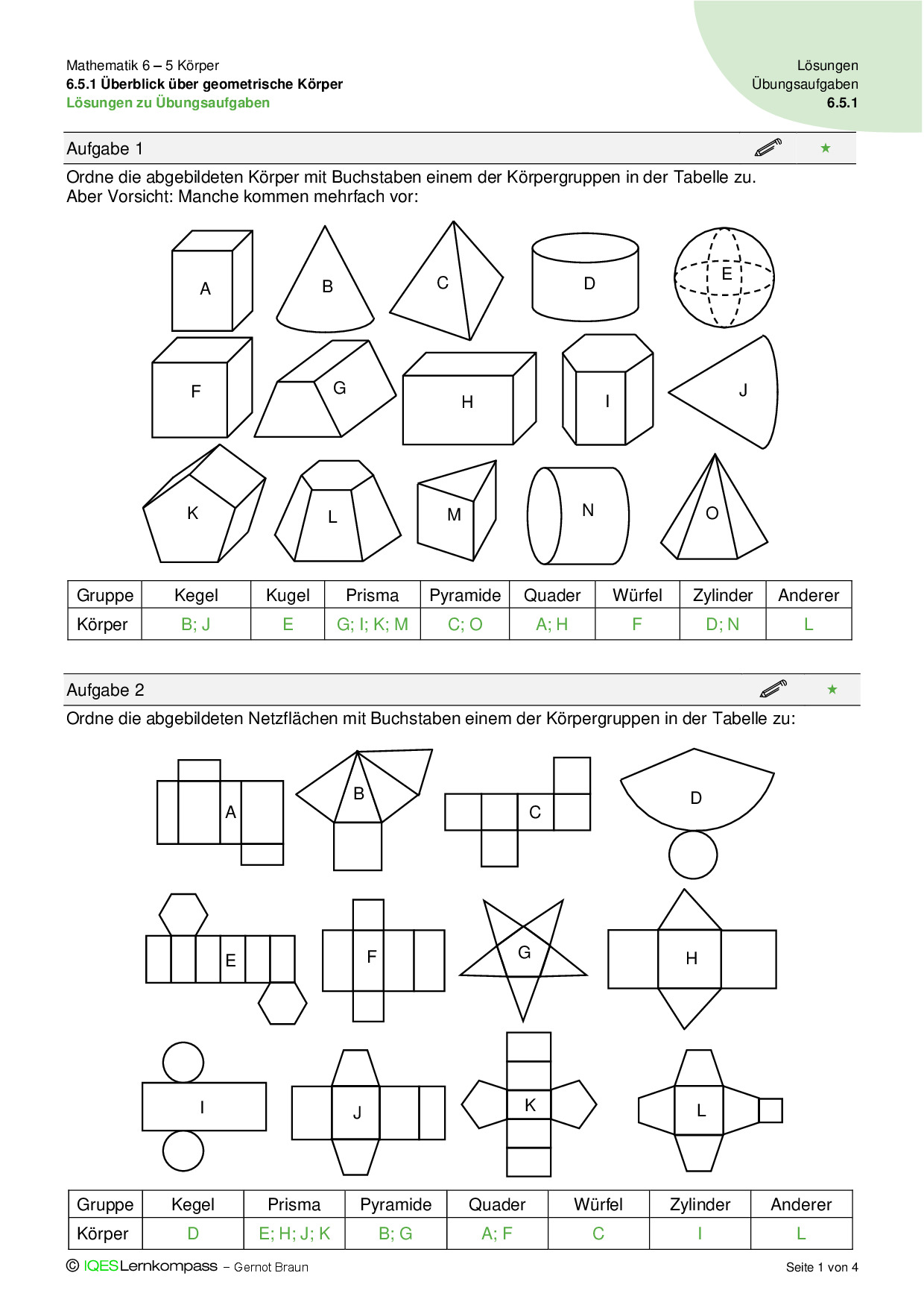 6.5.1 Überblick über geometrisch Körper – Übungsaufgaben mit Lösungen
