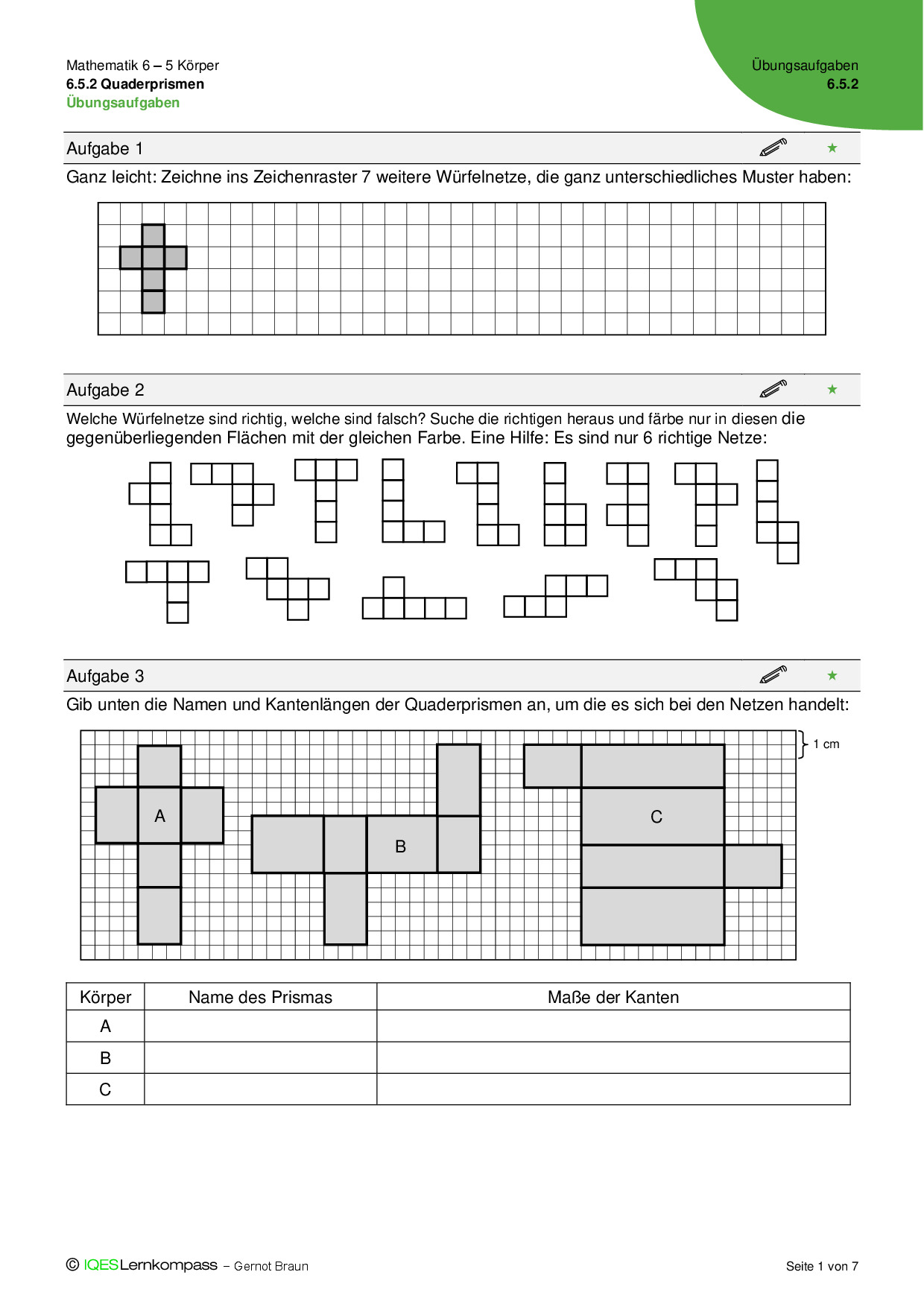 6.5.2 Quaderprismen – Übungsaufgaben