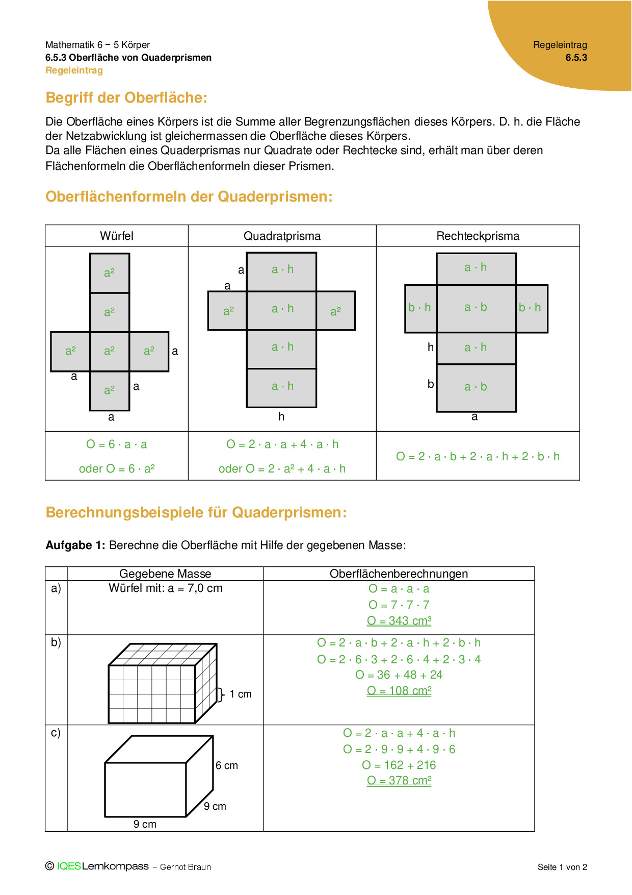 6.5.3 Oberfläche von Quaderprismen – Regeleintrag
