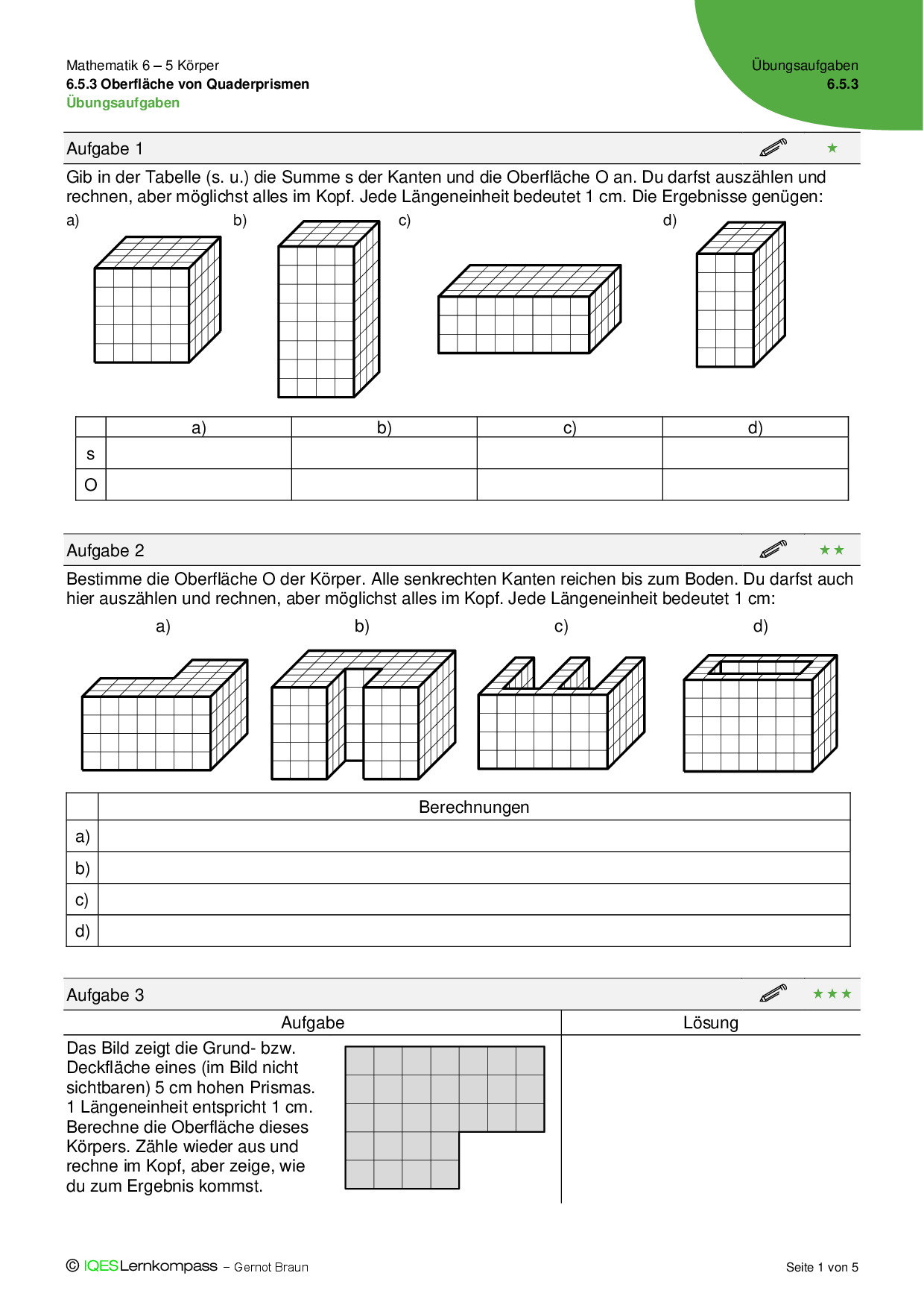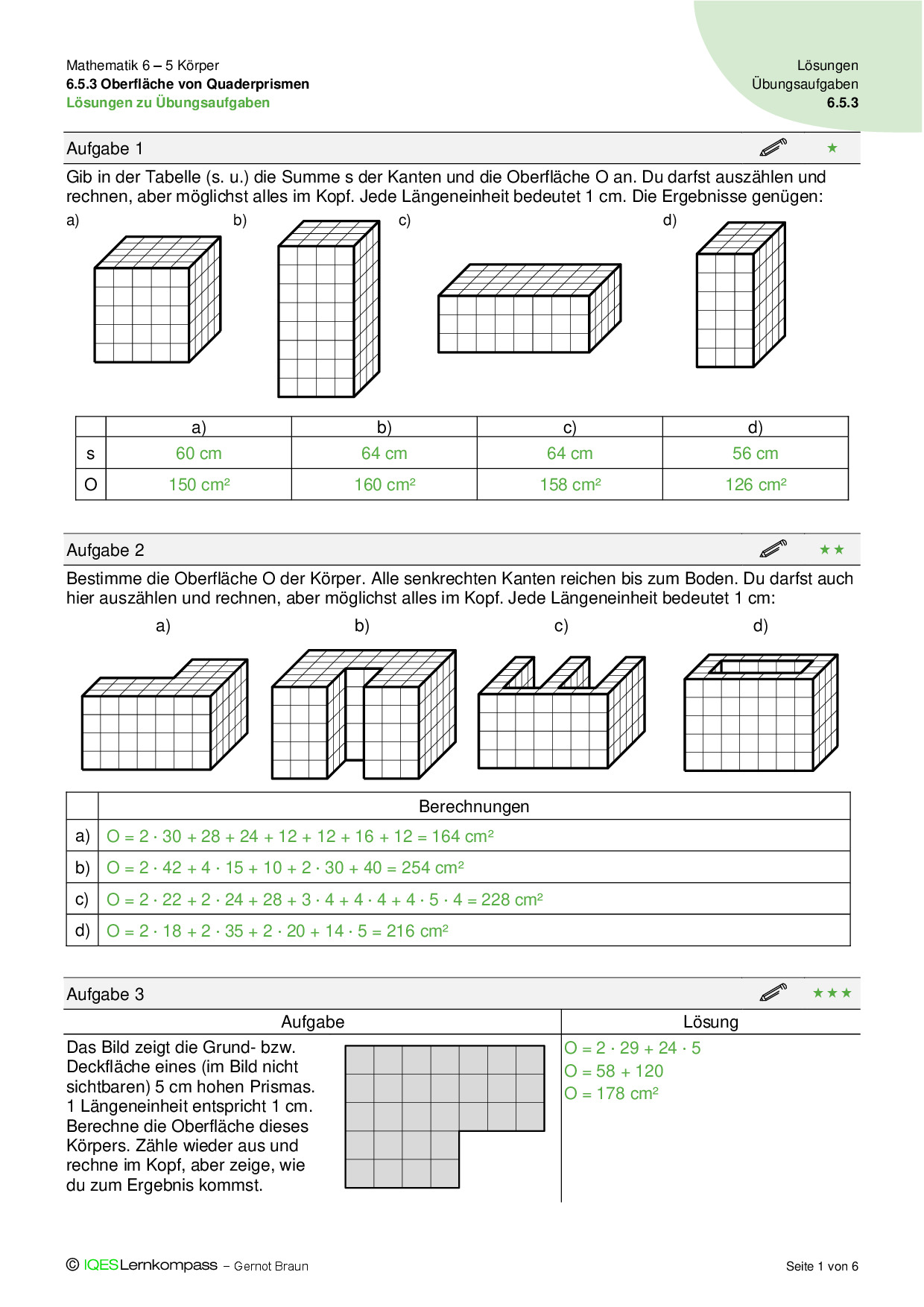 6.5.3 Oberfläche von Quaderprismen – Übungsaufgaben mit Lösungen