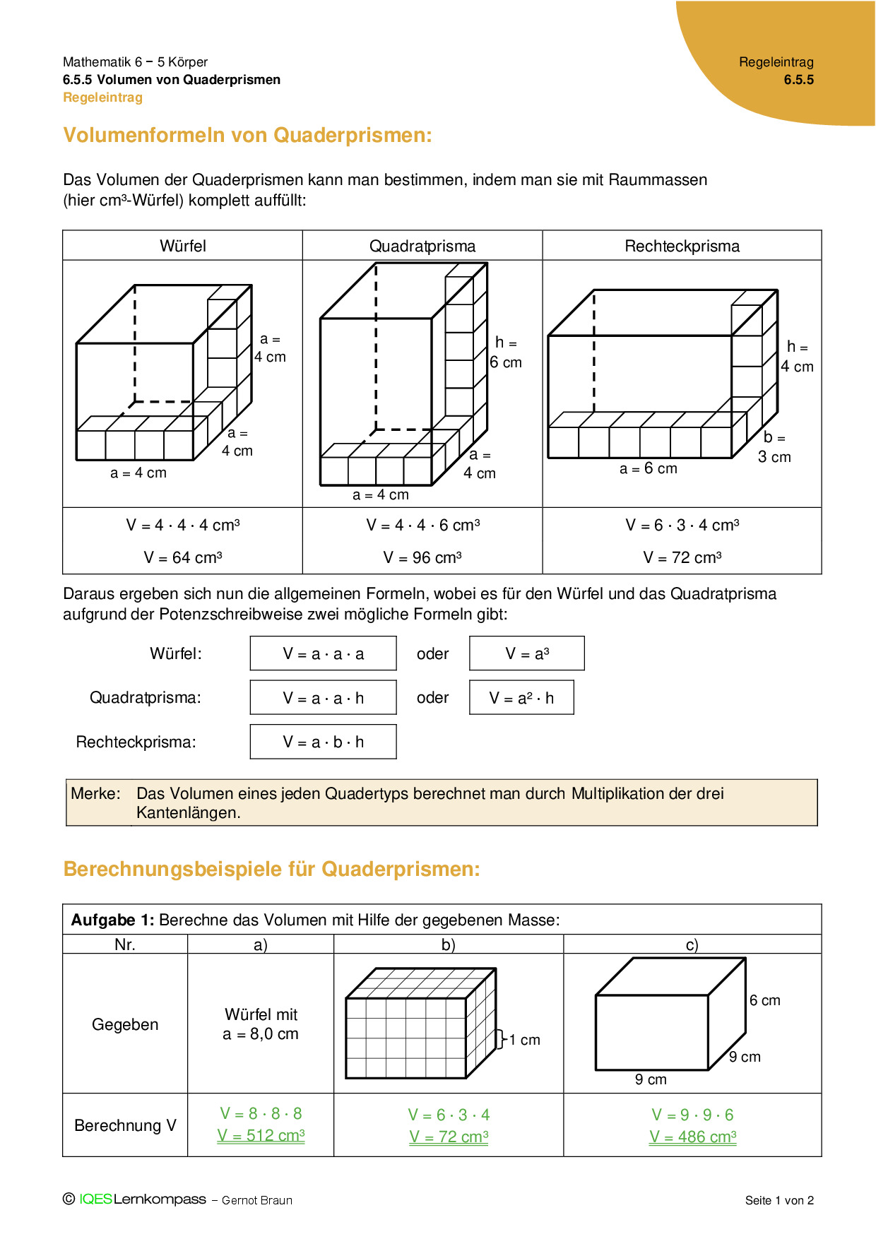 6.5.5 Volumen von Quaderprismen – Regeleintrag