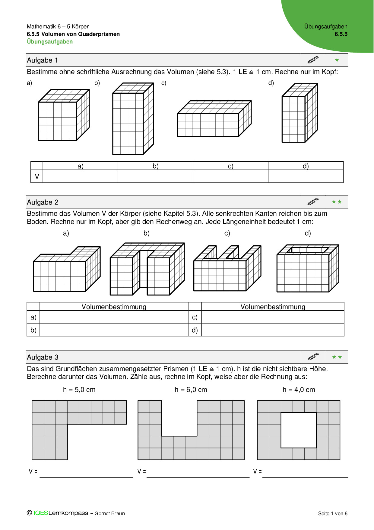 6.5.5 Volumen von Quaderprismen – Übungsaufgaben