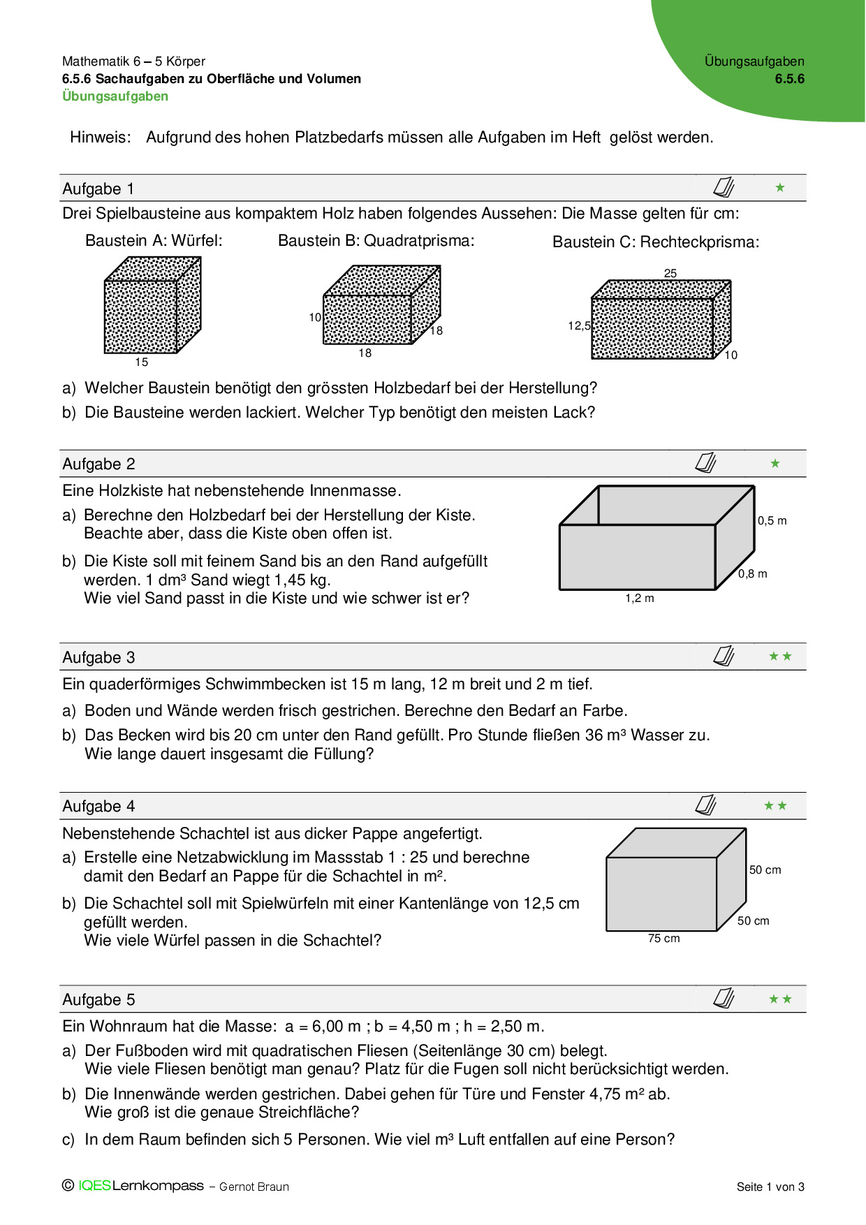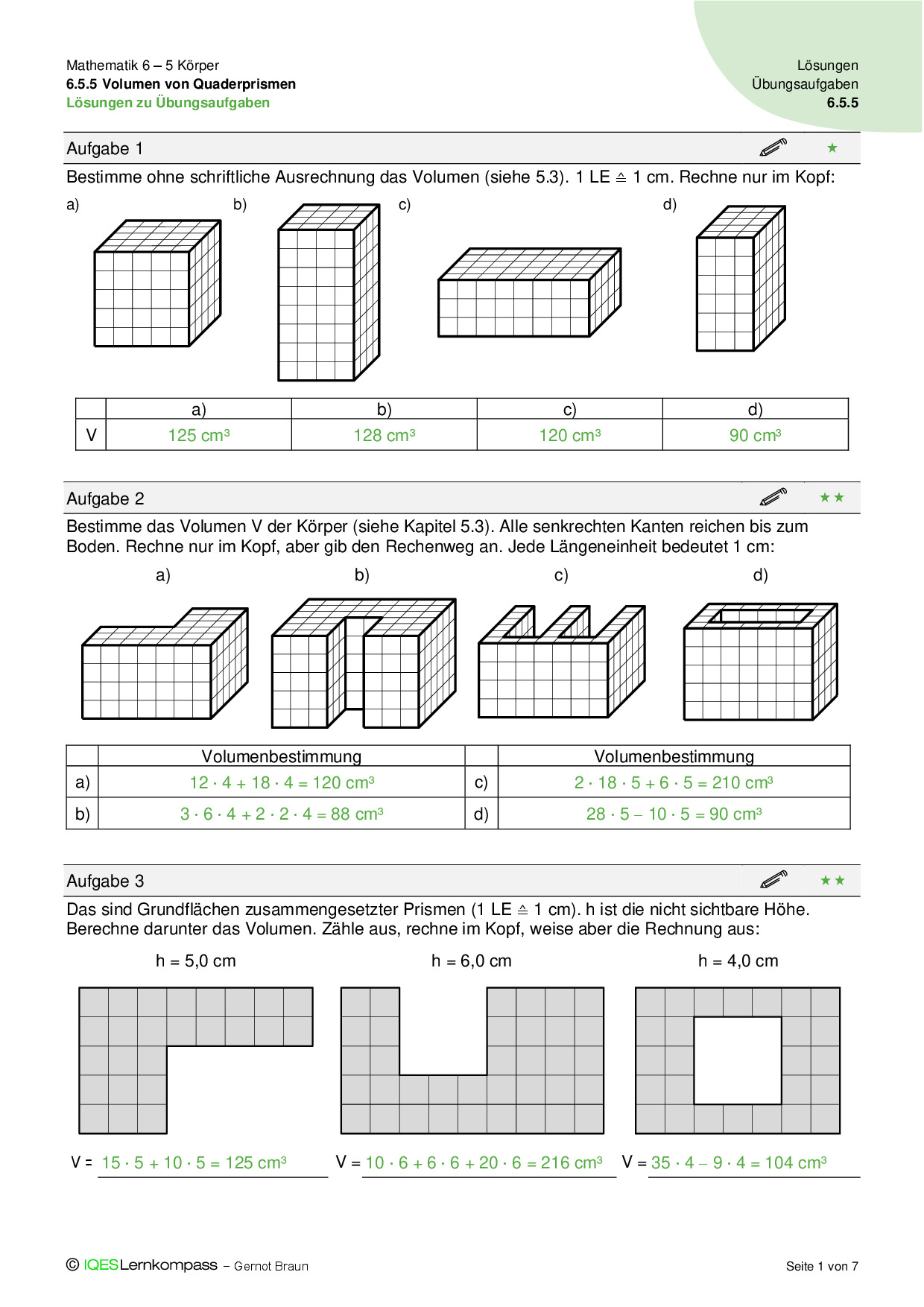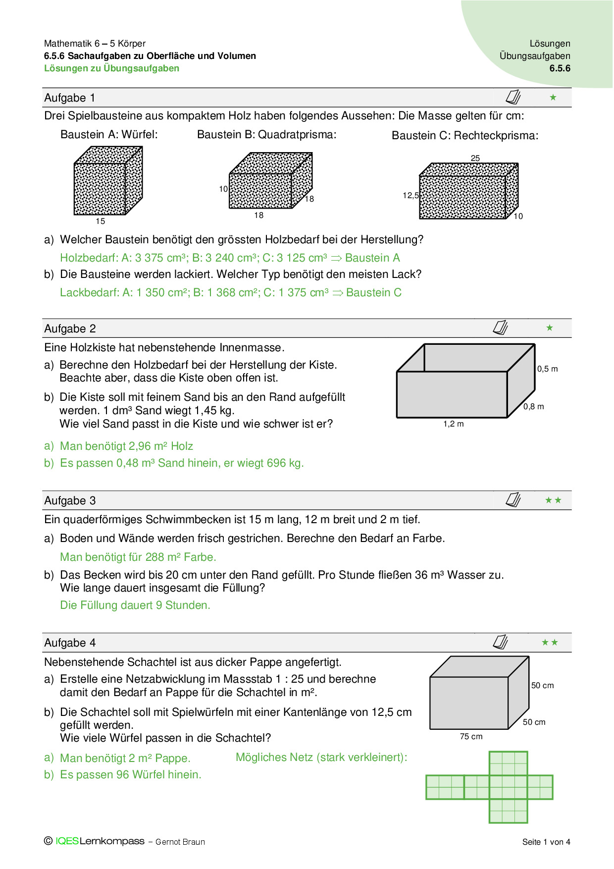 6.5.2 Quaderprismen – Übungsaufgaben mit Lösungen