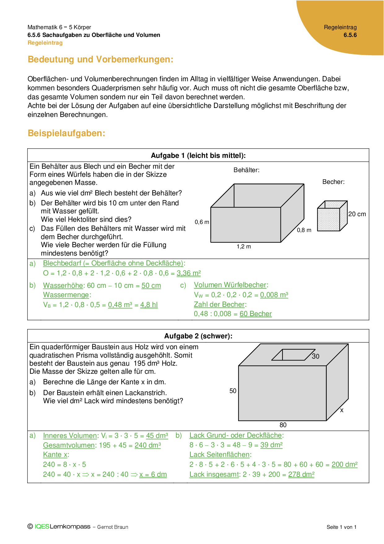 6.5.6 Sachaufgaben zu Oberfläche und Volumen – Regeleintrag