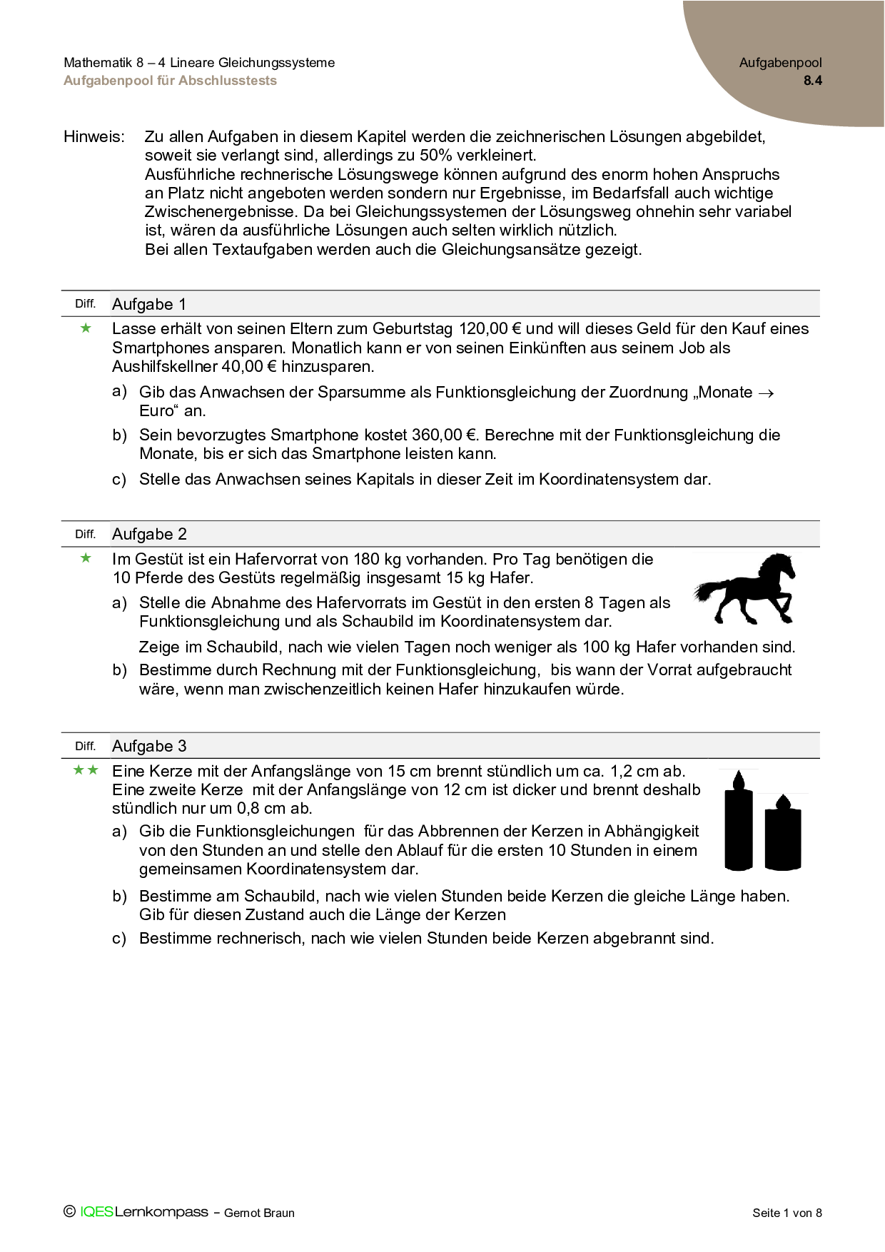 8.4 Lineare Gleichungssysteme – Aufgabenpool für Abschlusstests