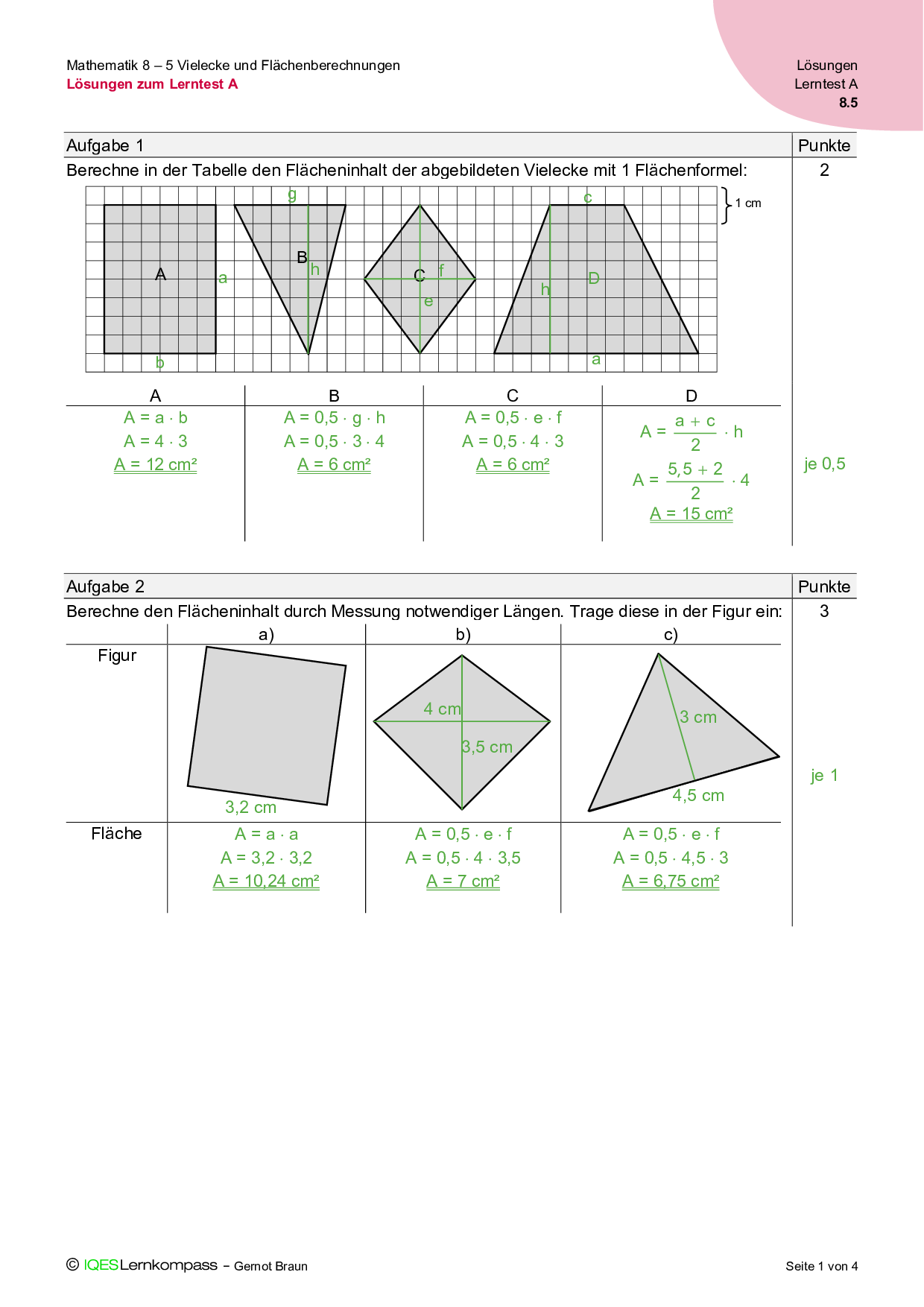 8.5 Vielecke und Flächenberechnungen – Lösungen zum Lerntest A