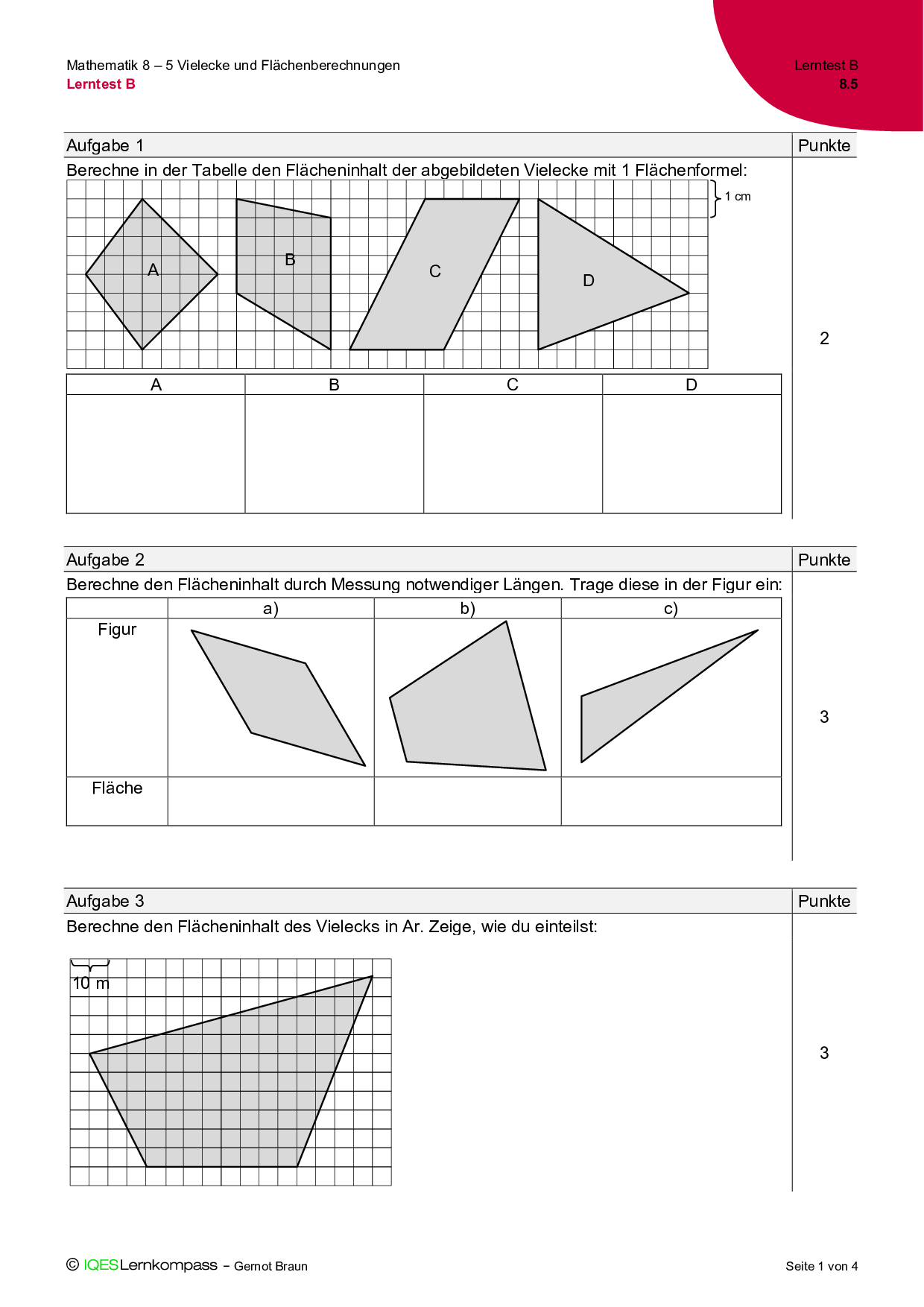 8.5 Vielecke und Flächenberechnungen – Lerntest B