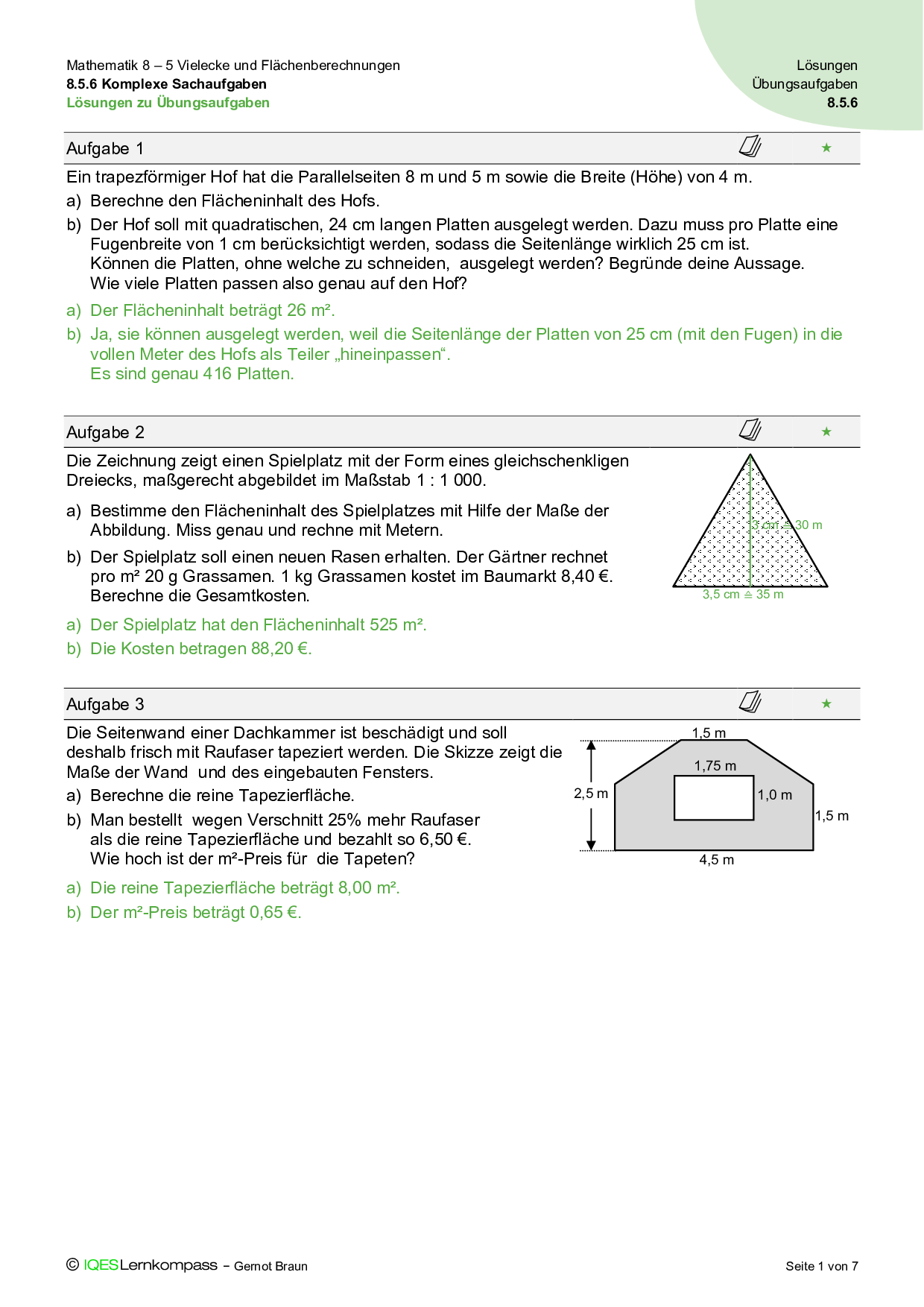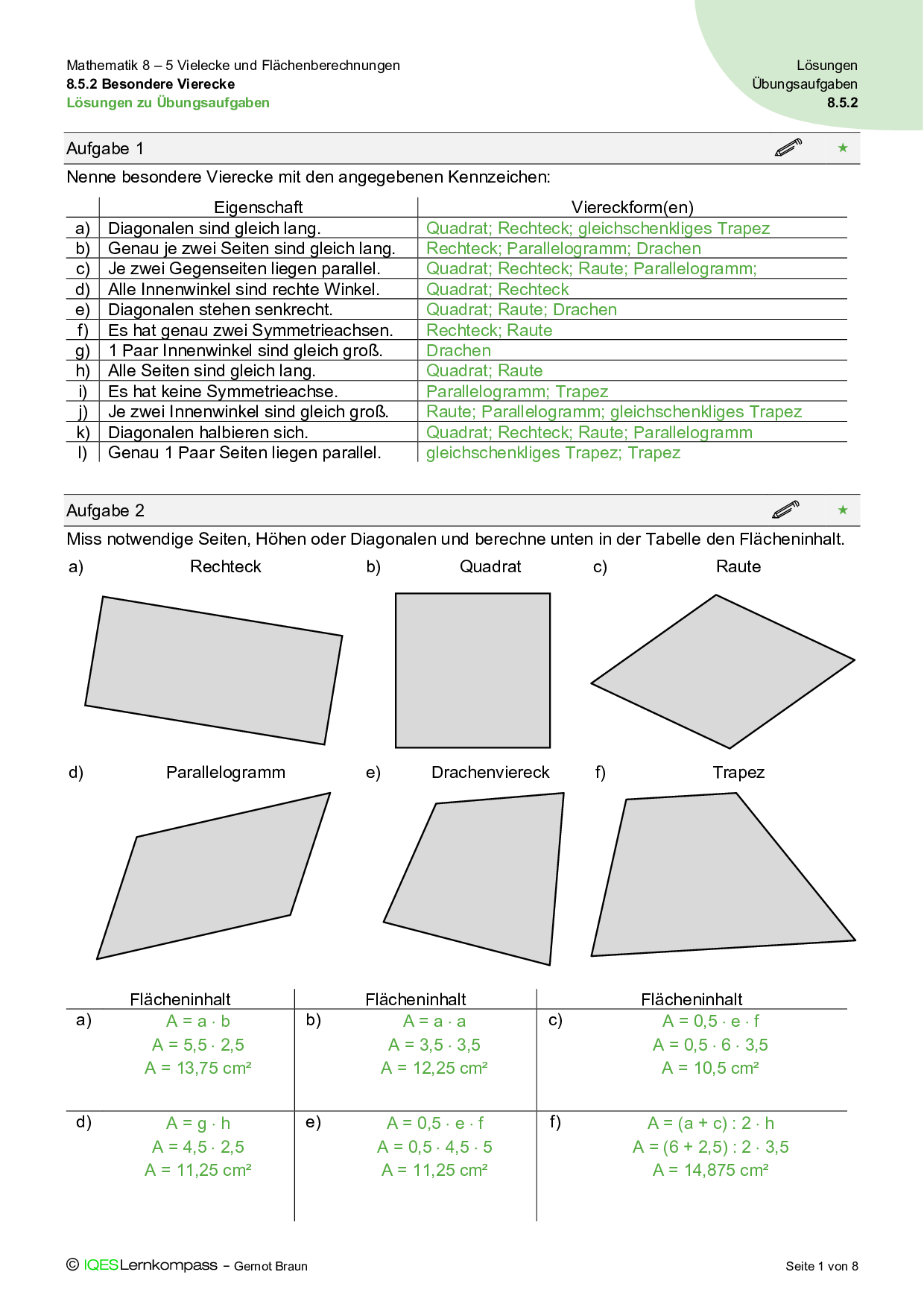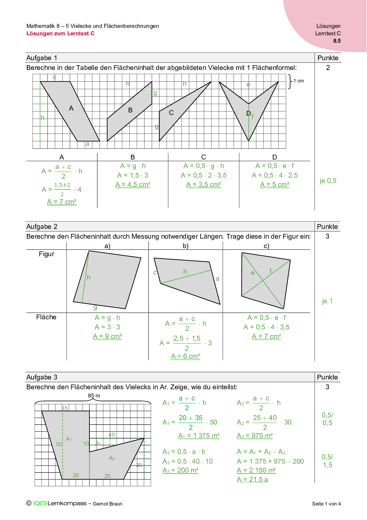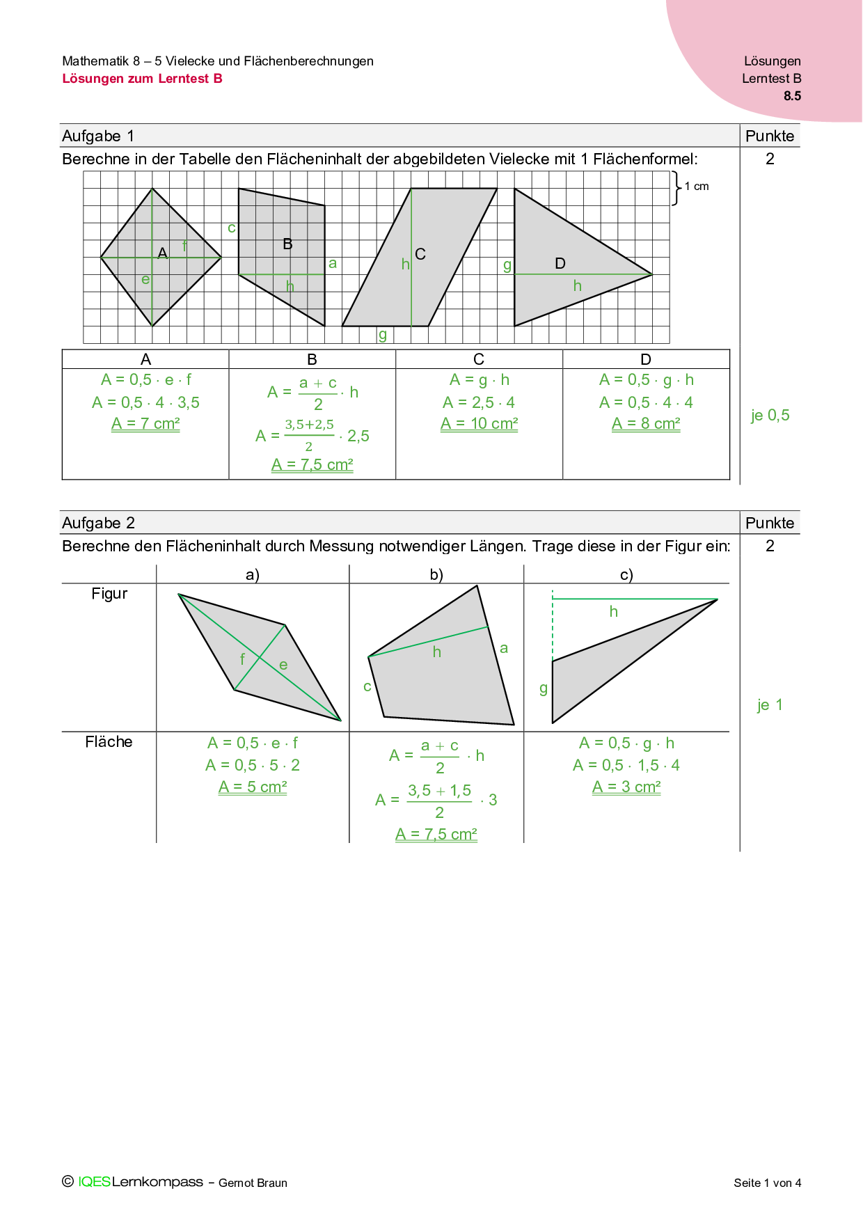 8.5 Vielecke und Flächenberechnungen – Lösungen zum Lerntest B