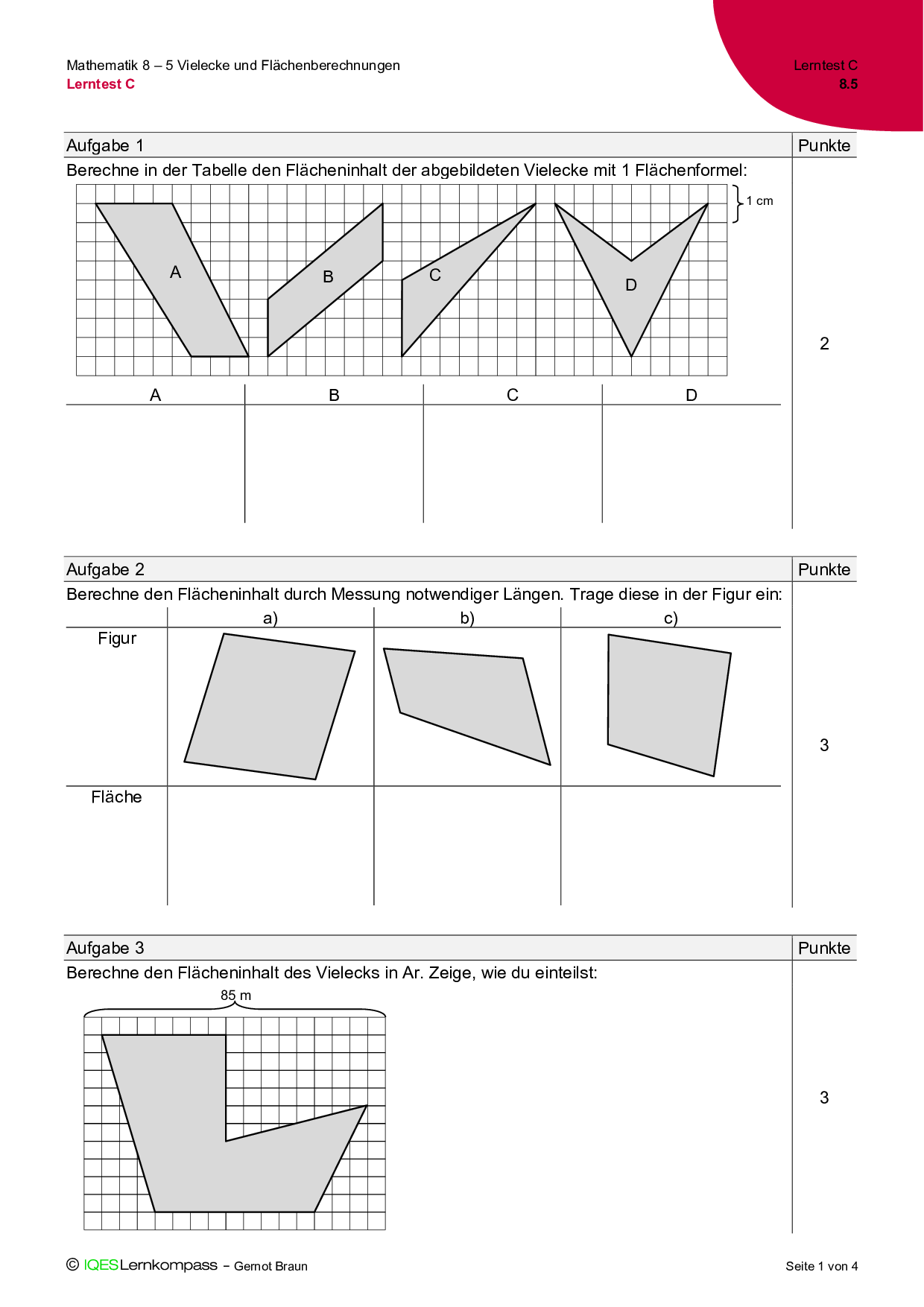 8.5 Vielecke und Flächenberechnungen – Lerntest C