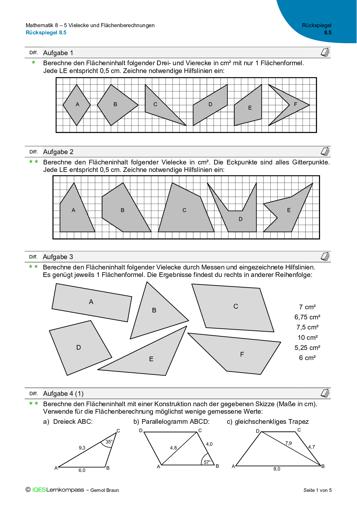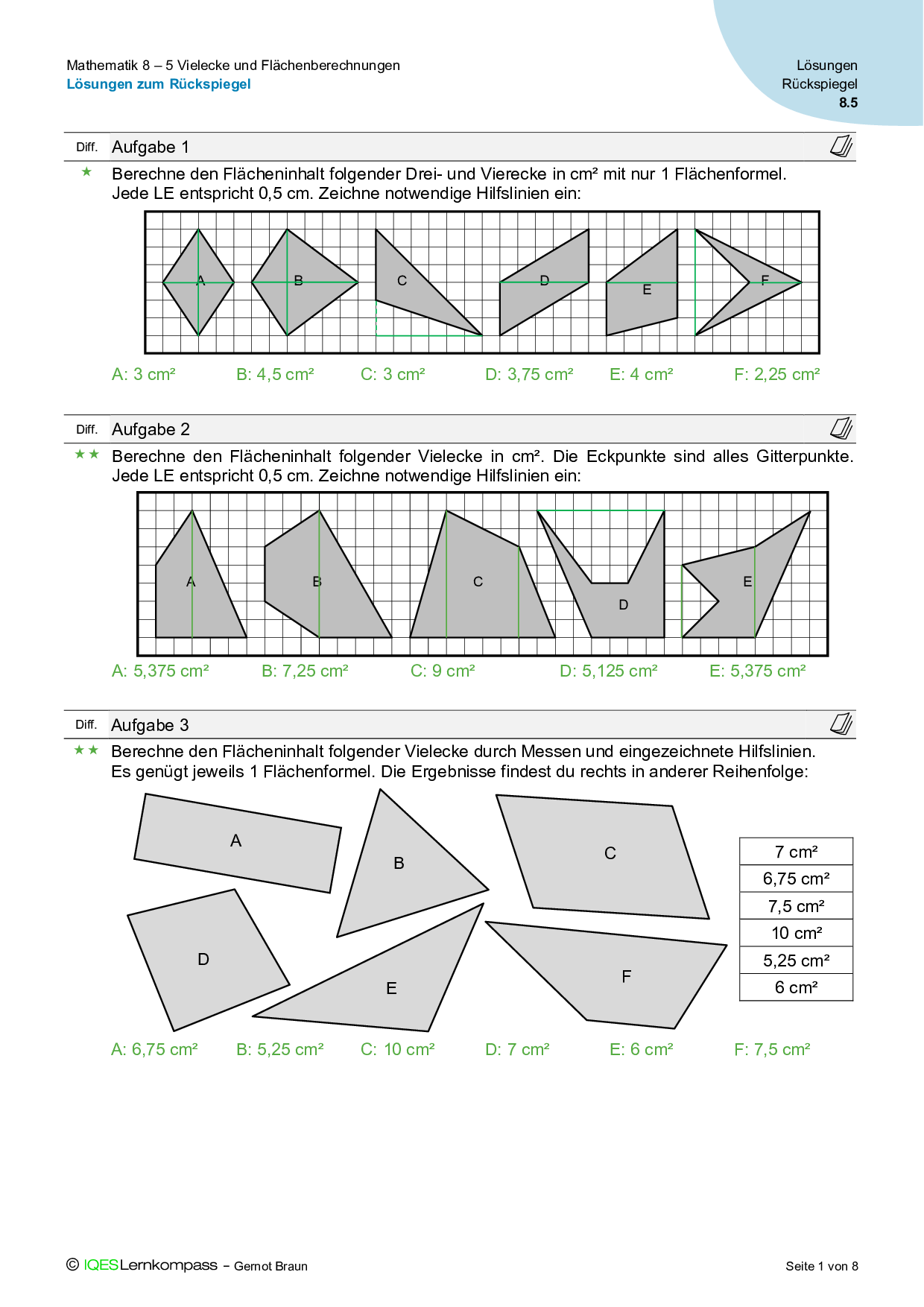 8.5 Vielecke und Flächenberechnungen – Lösungen zum Rückspiegel