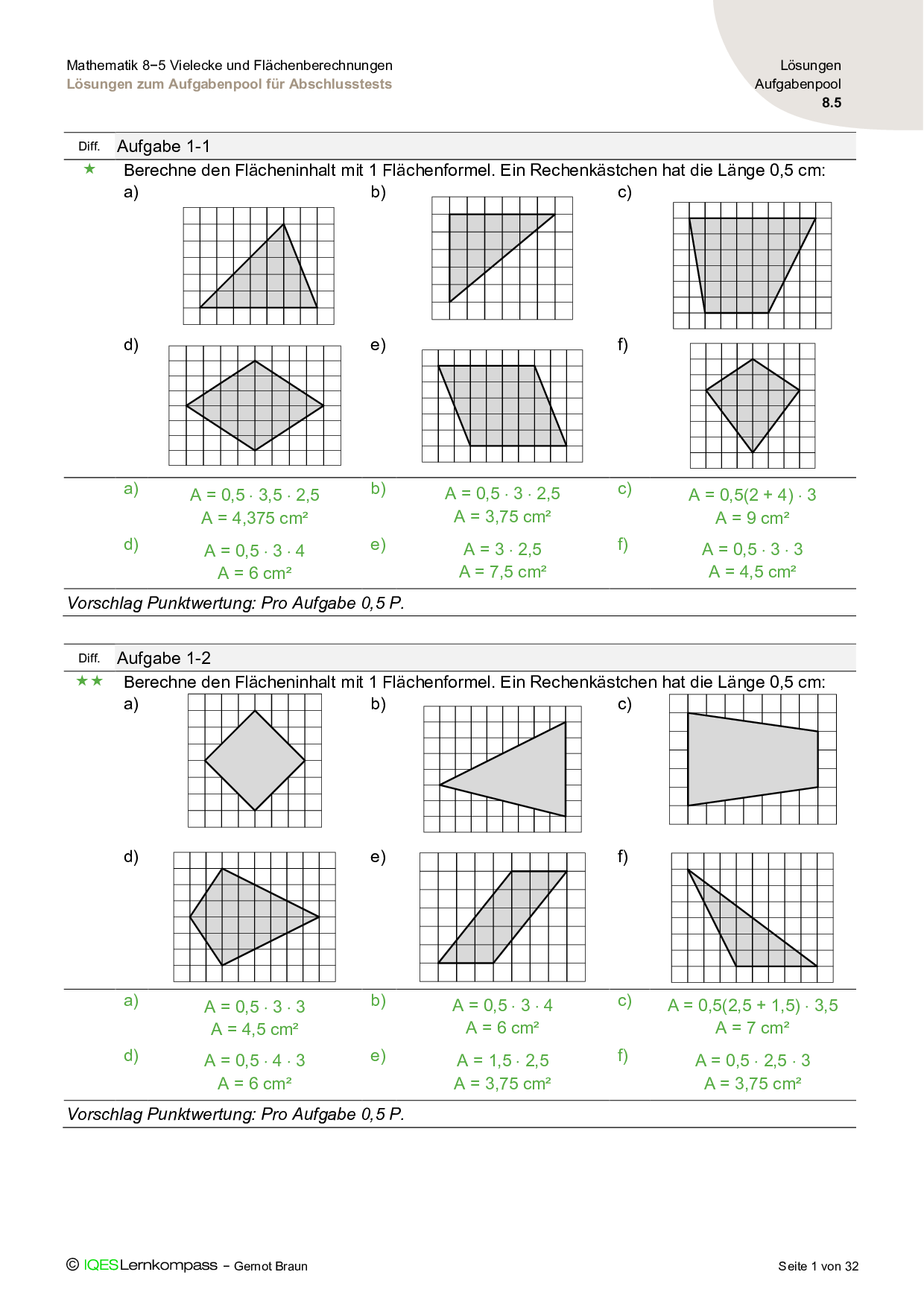 8.5 Vielecke und Flächenberechnungen – Lösungen zum Aufgabenpool für Abschlusstests