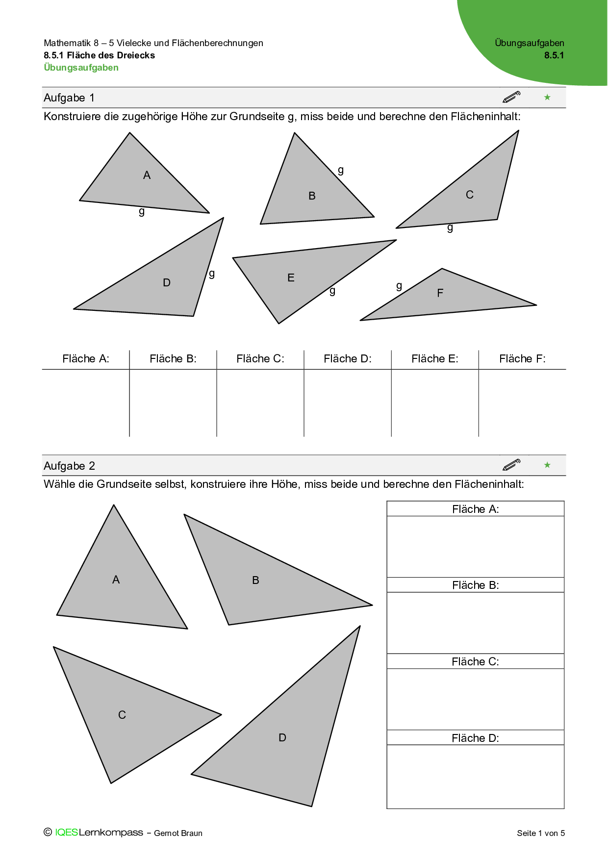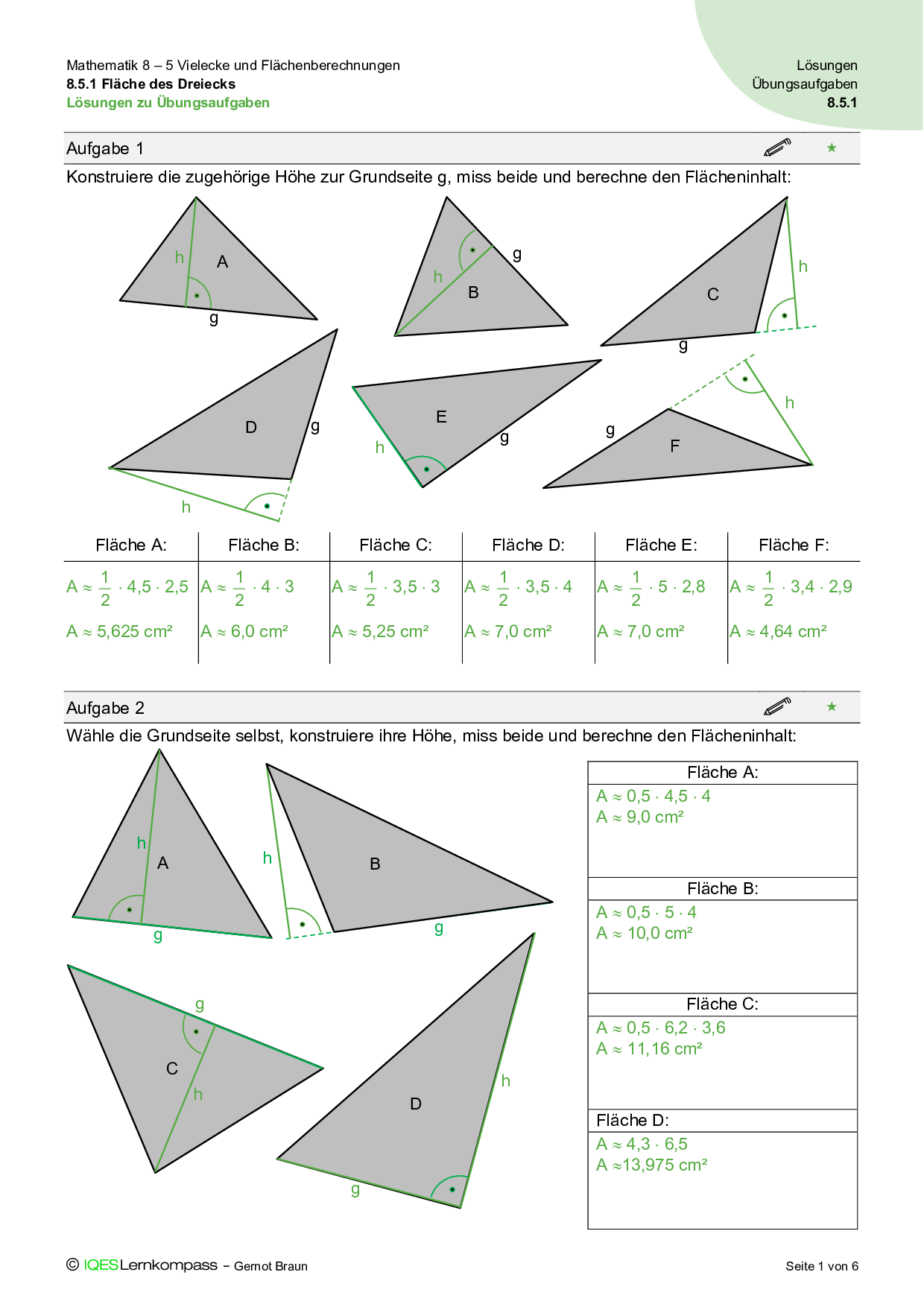 8.5.1 Fläche des Dreiecks – Übungsaufgaben mit Lösungen
