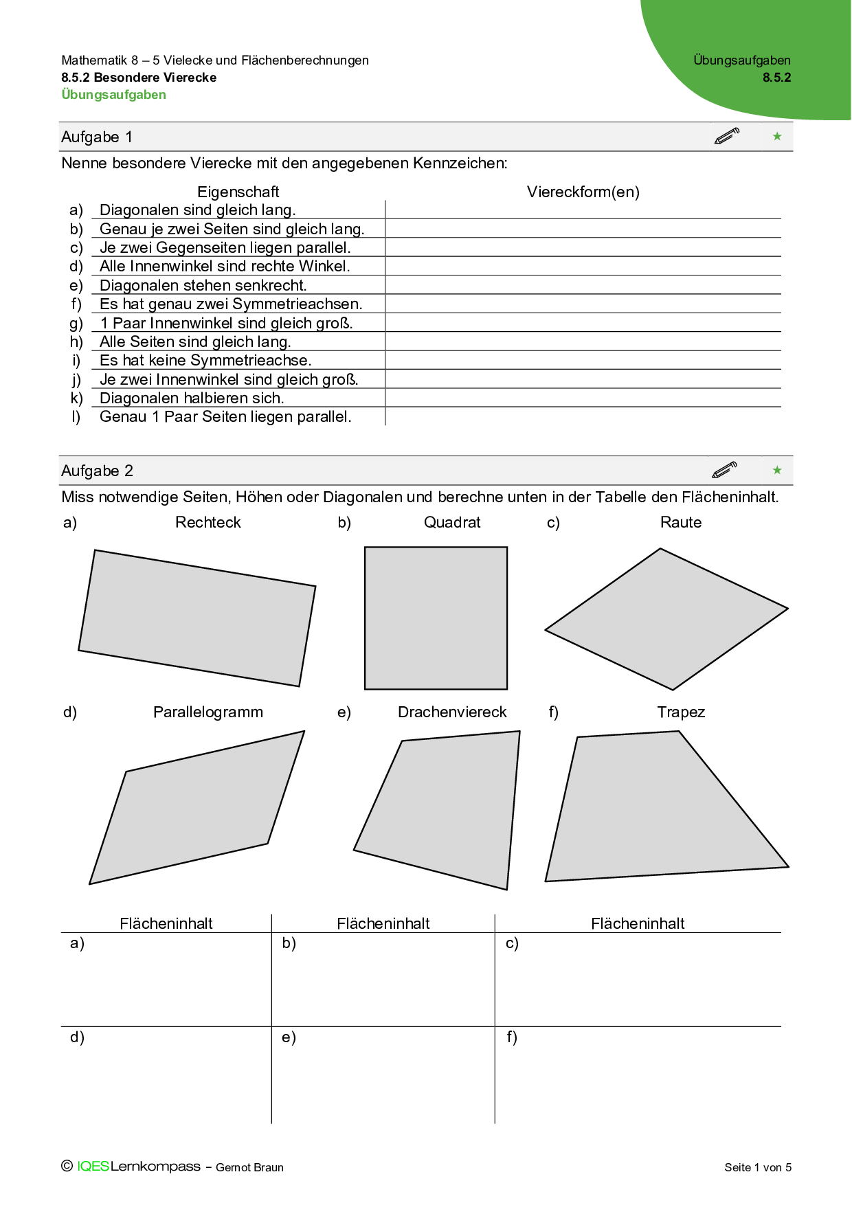8.5.2 Besondere Vierecke – Übungsaufgaben