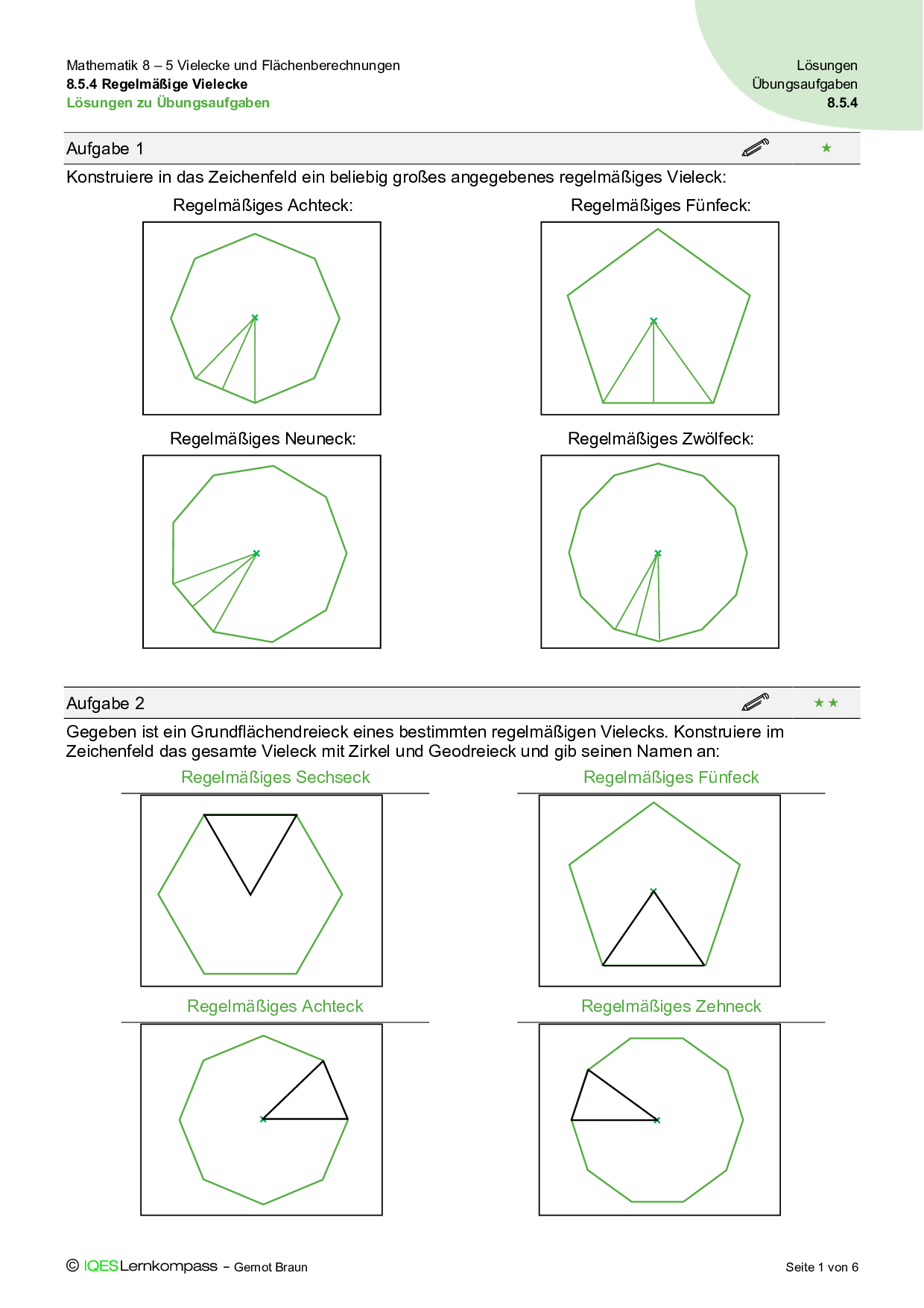 - Ich kann regelmäßige Vielecke maßgerecht konstruieren und ihren Flächeninhalt berechnen.