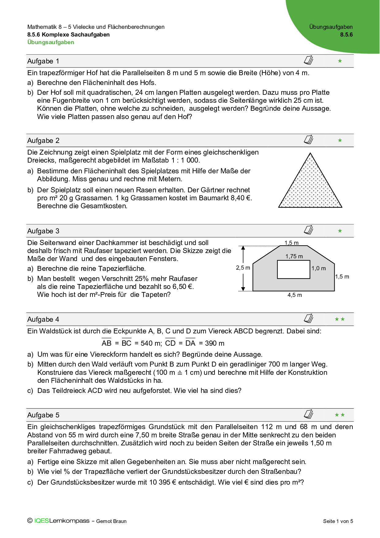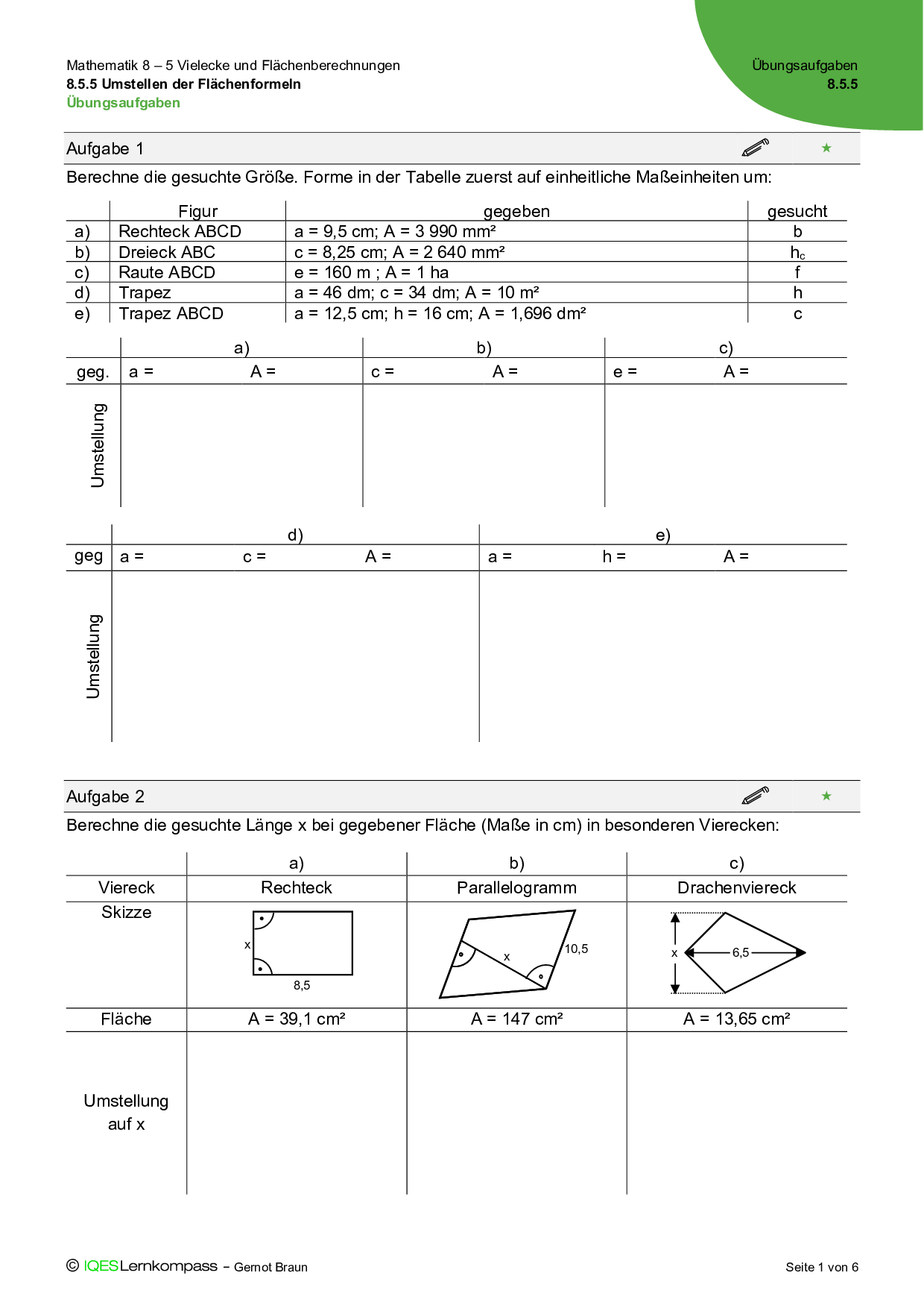 8.5.3 Zusammengesetzte Vierecke – Übungsaufgaben mit Lösungen