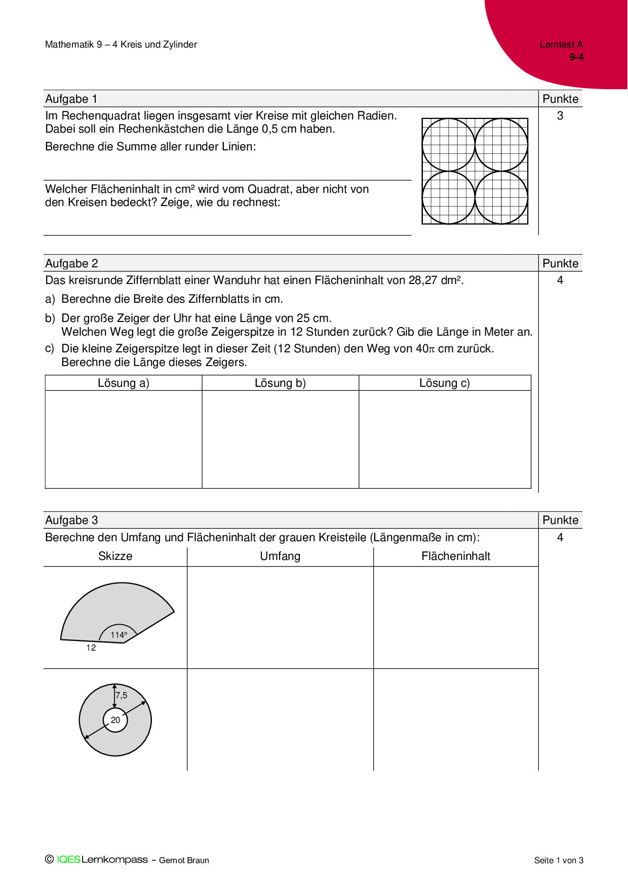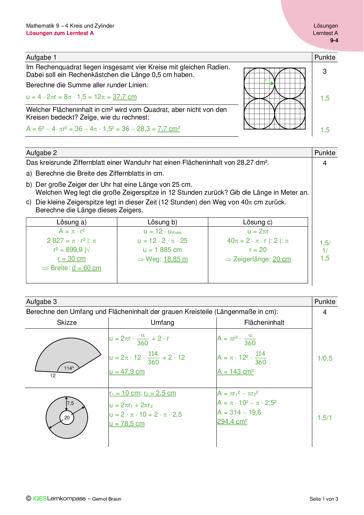 9.4 Kreis und Zylinder - Lösungen zum Lerntest A