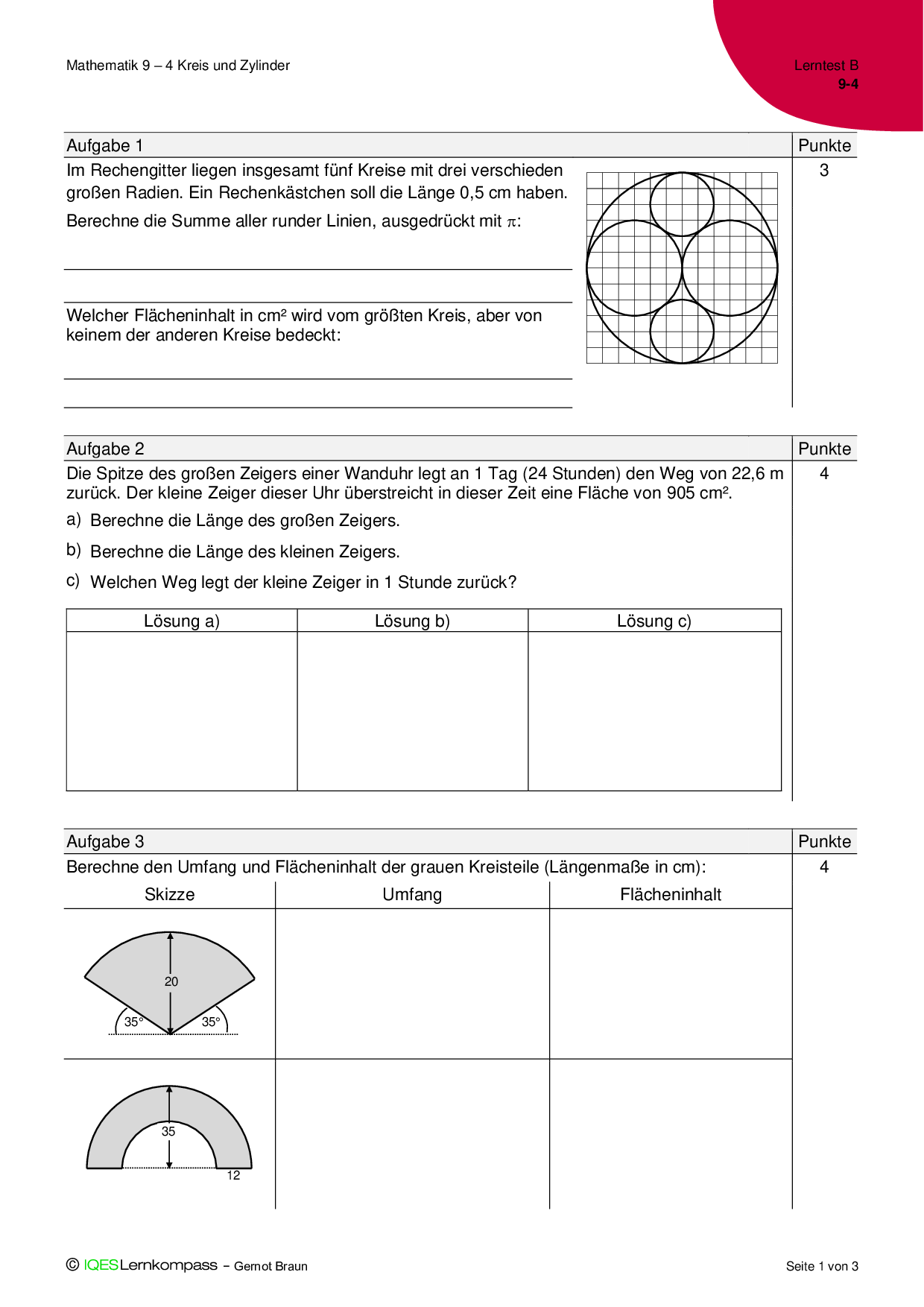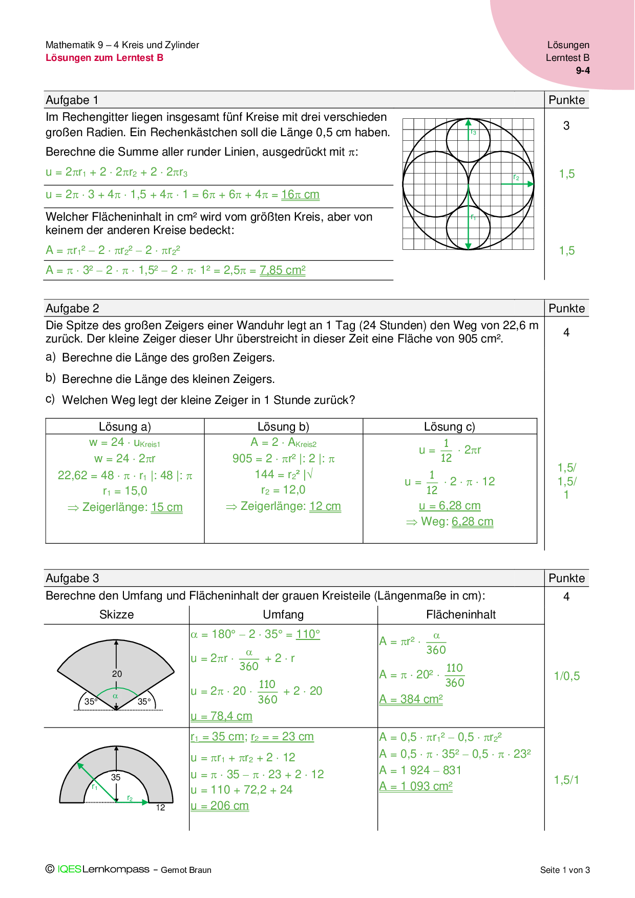 9.4 Kreis und Zylinder - Lösungen zum Lerntest B