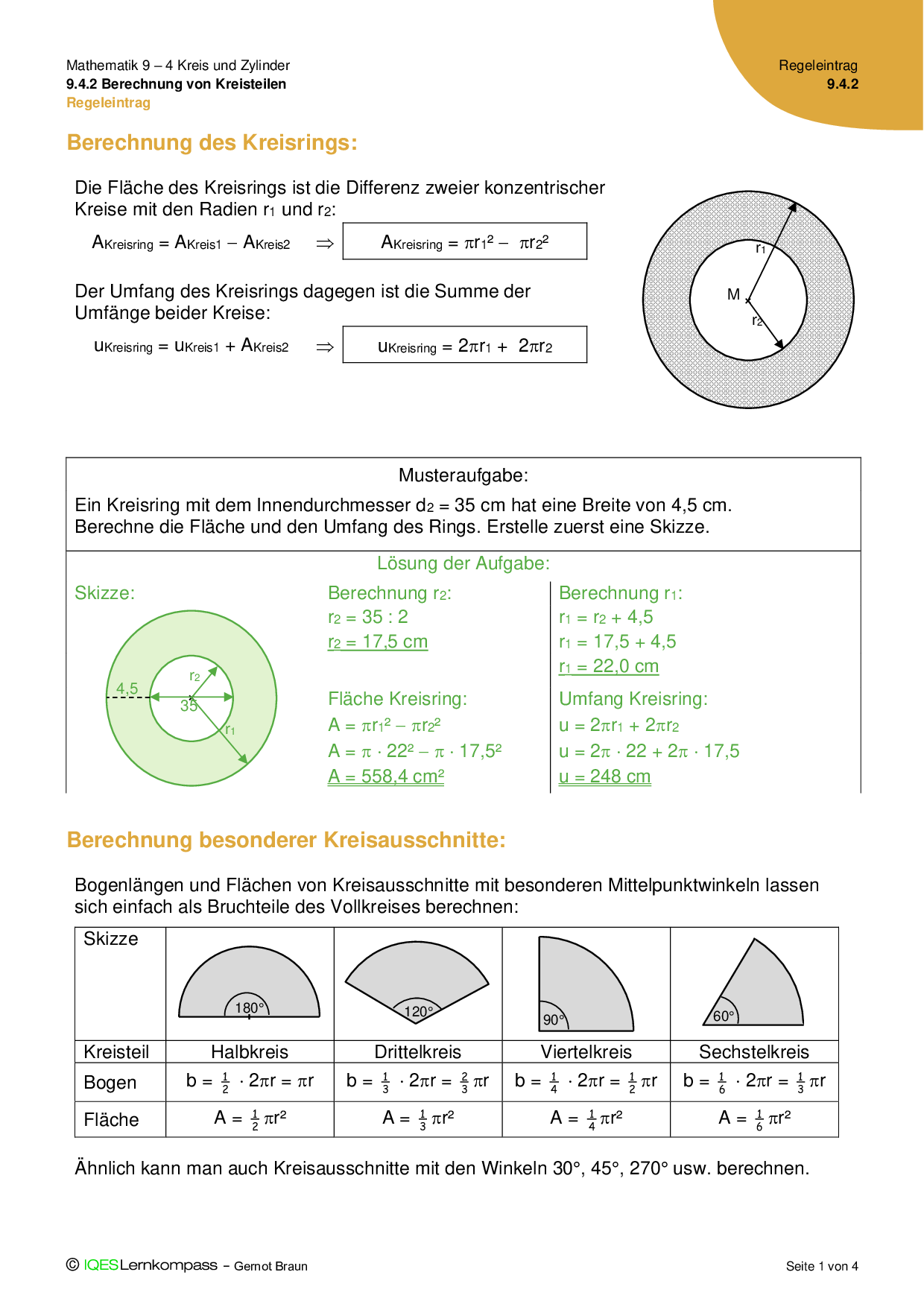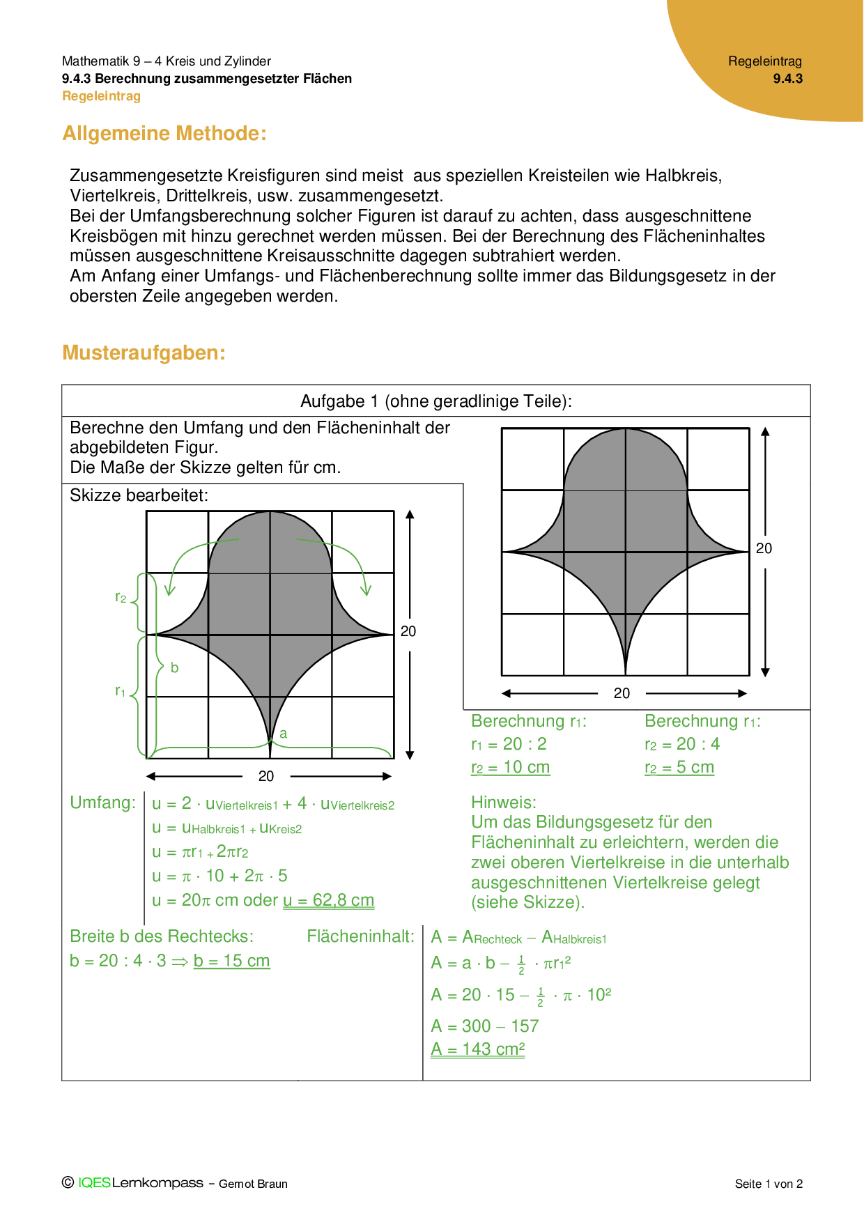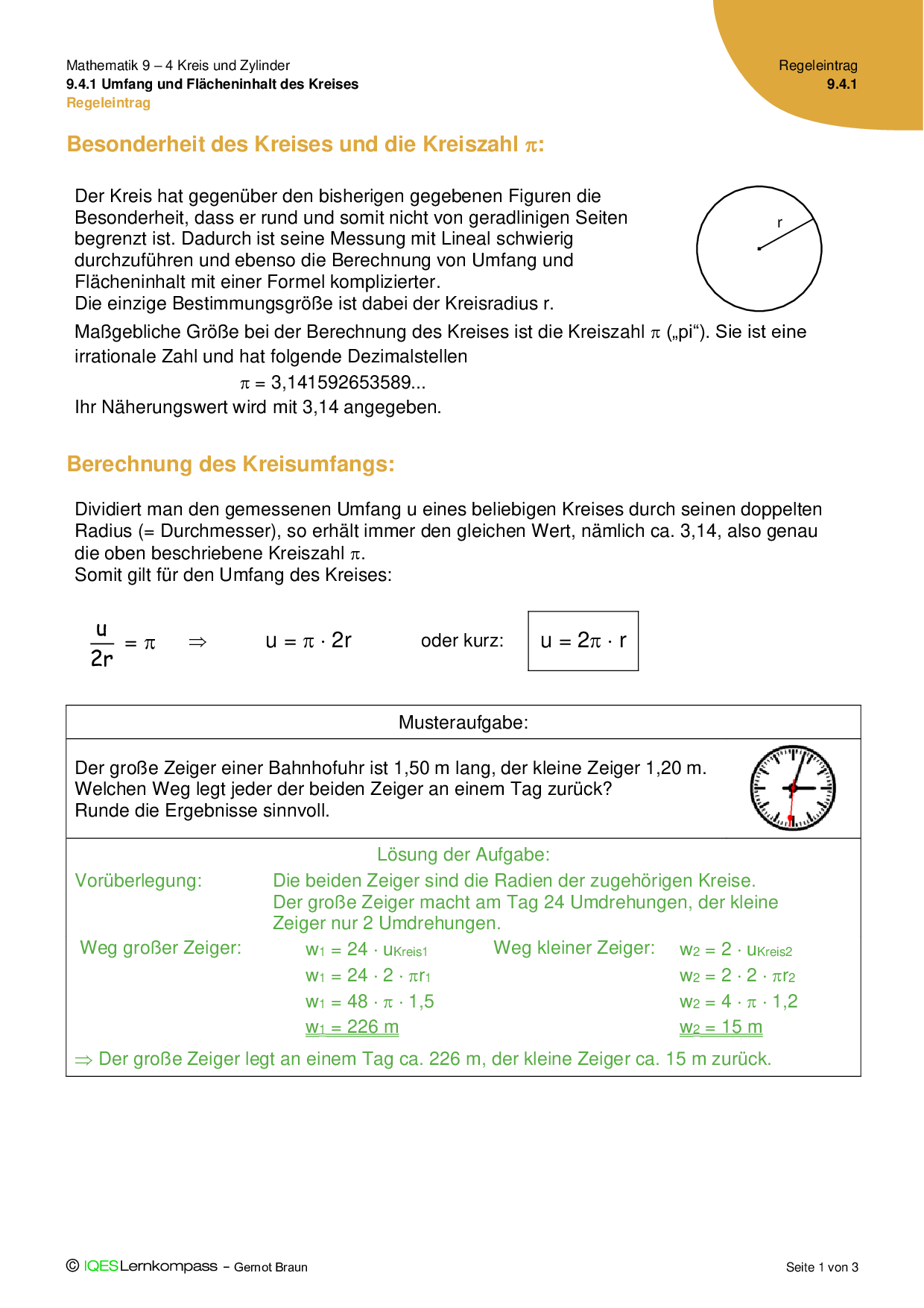 9.4.1 Umfang und Flächeninhalt des Kreises - Regeleintrag