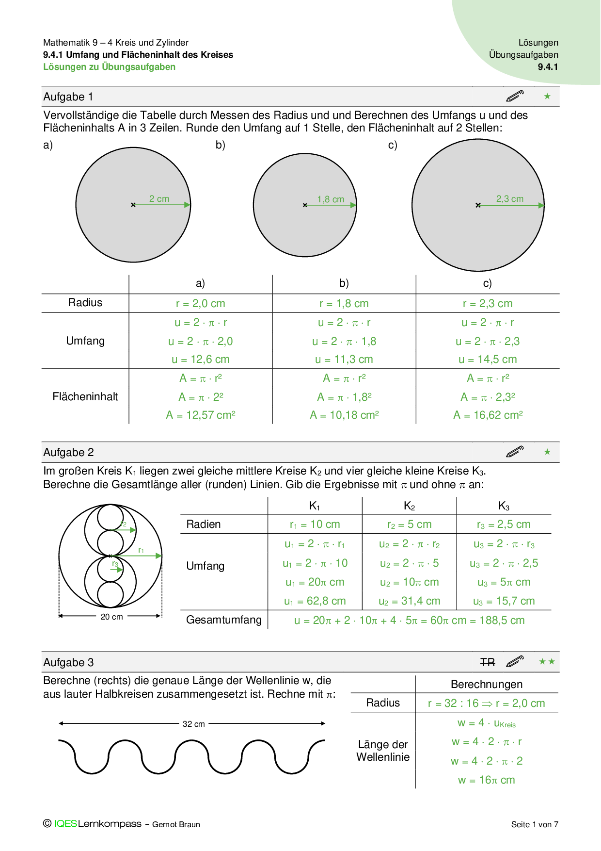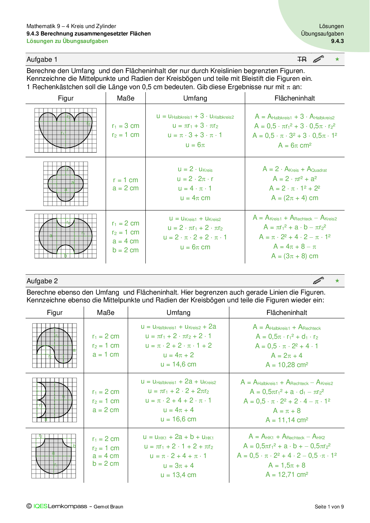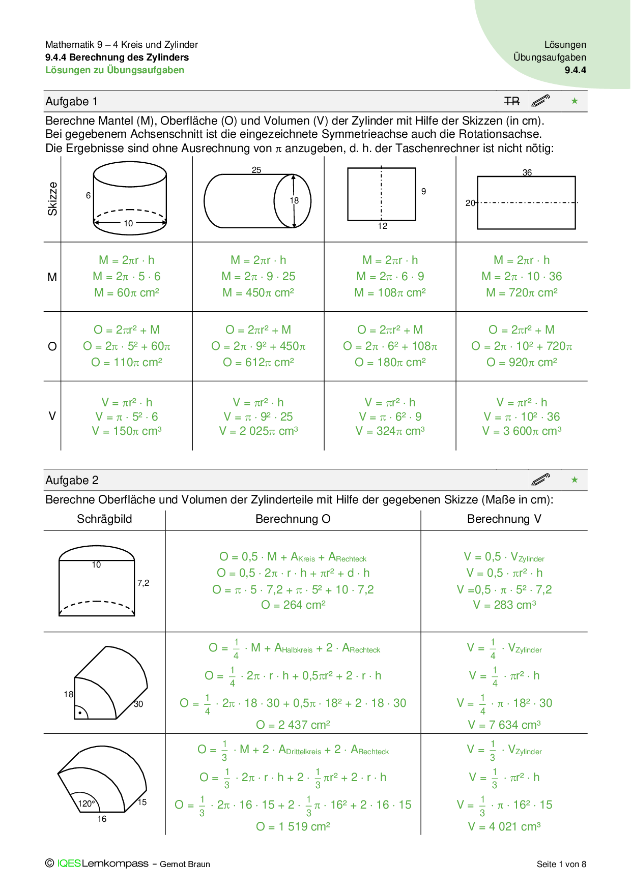 9.4 Kreis und Zylinder - Lösungen zum Aufgabenpool für Abschlusstests