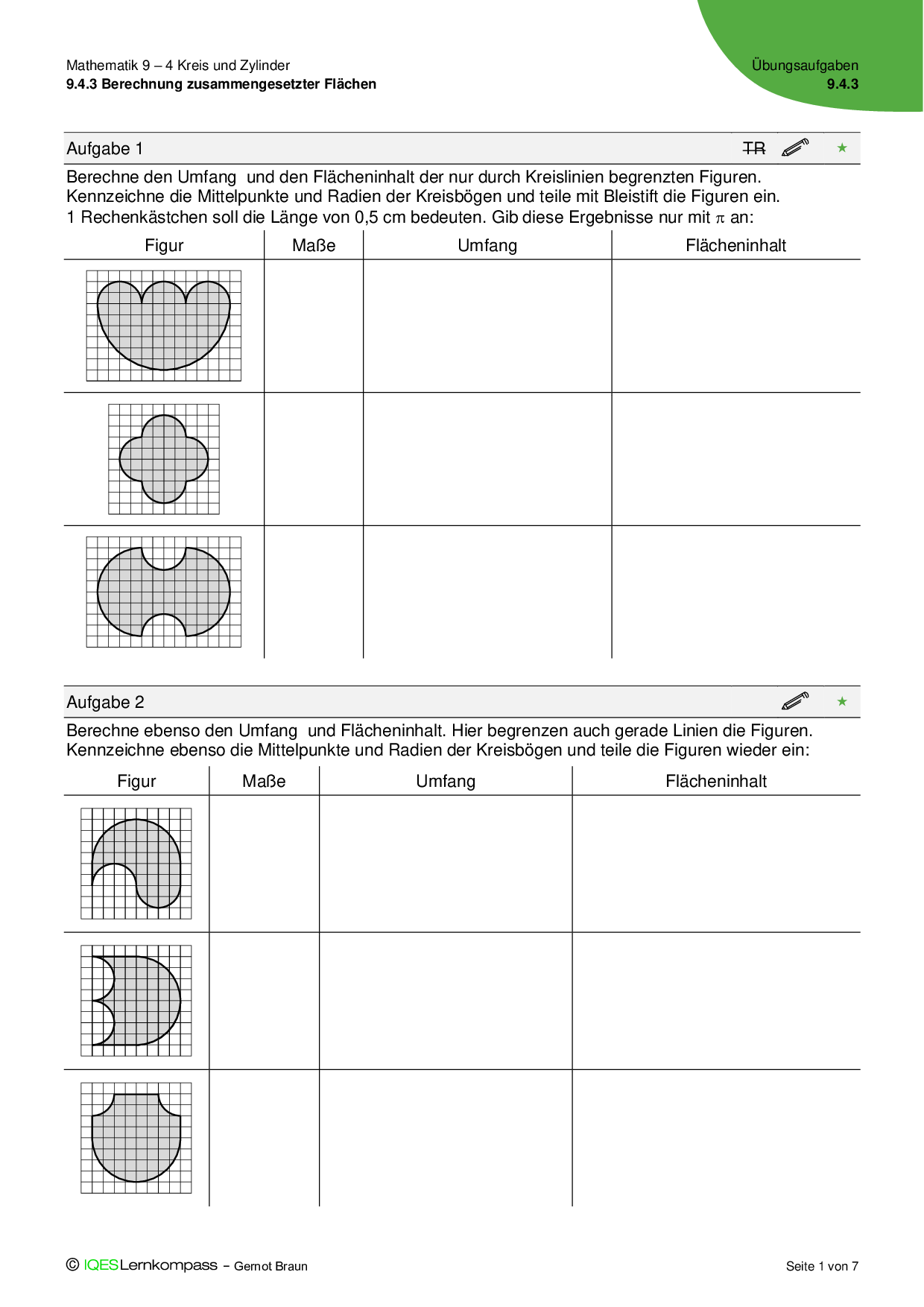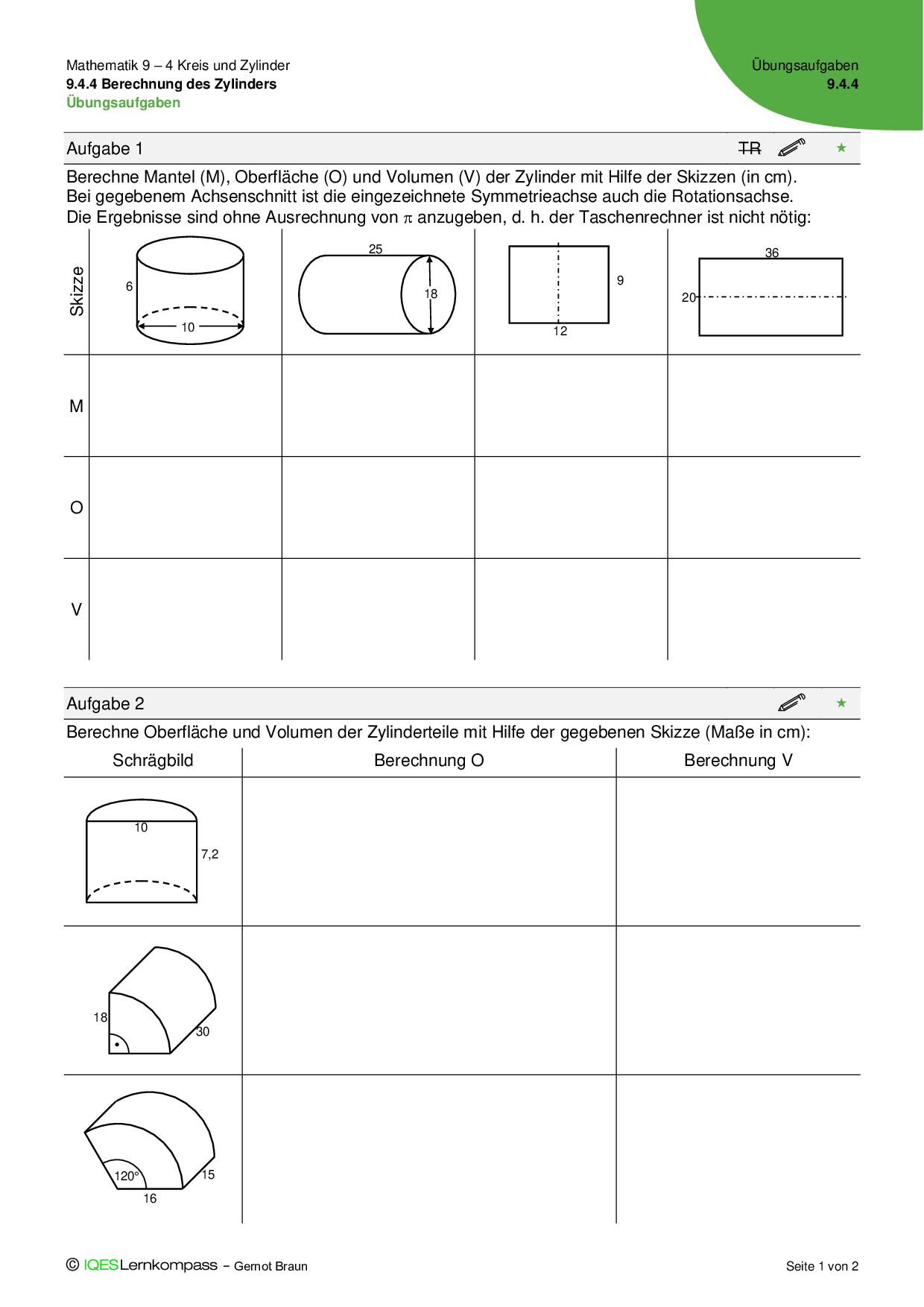 9.4 Kreis und Zylinder - Aufgabenpool für Abschlusstests