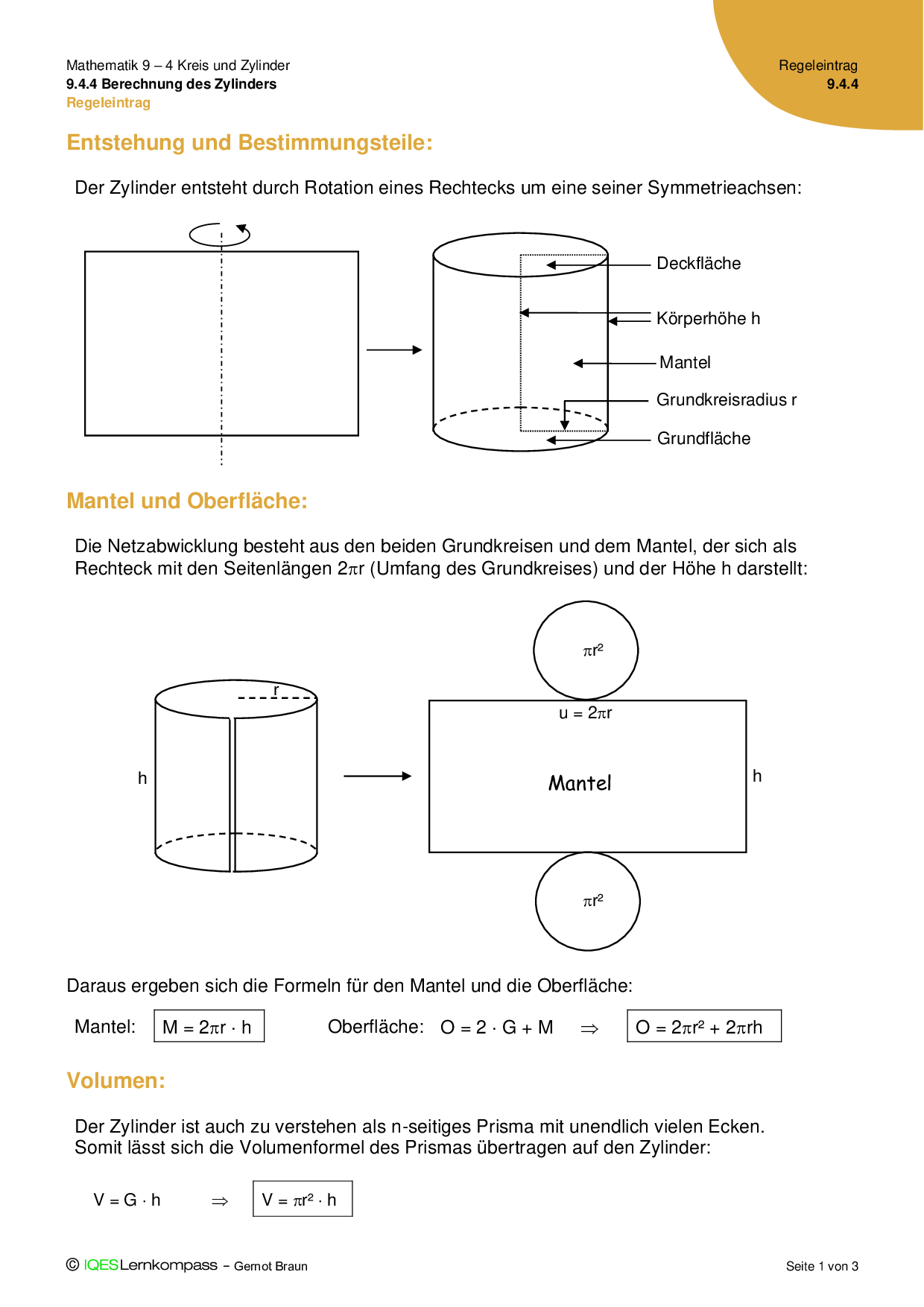 Lernziele und Inhalte: 9.4 Kreis und Zylinder