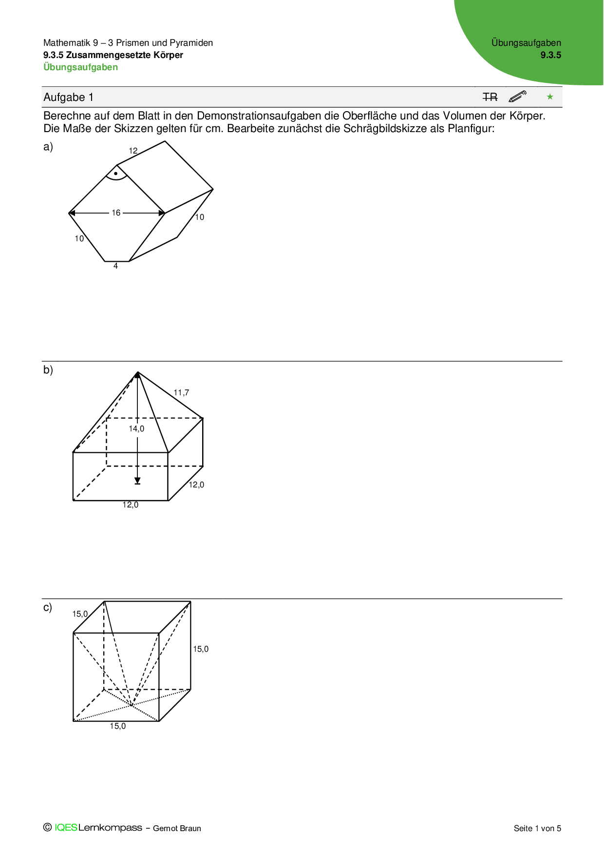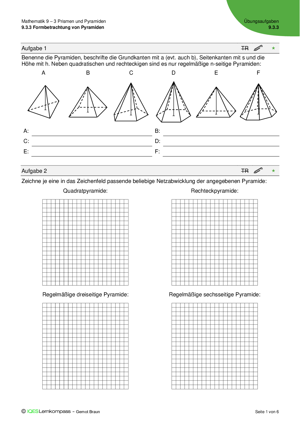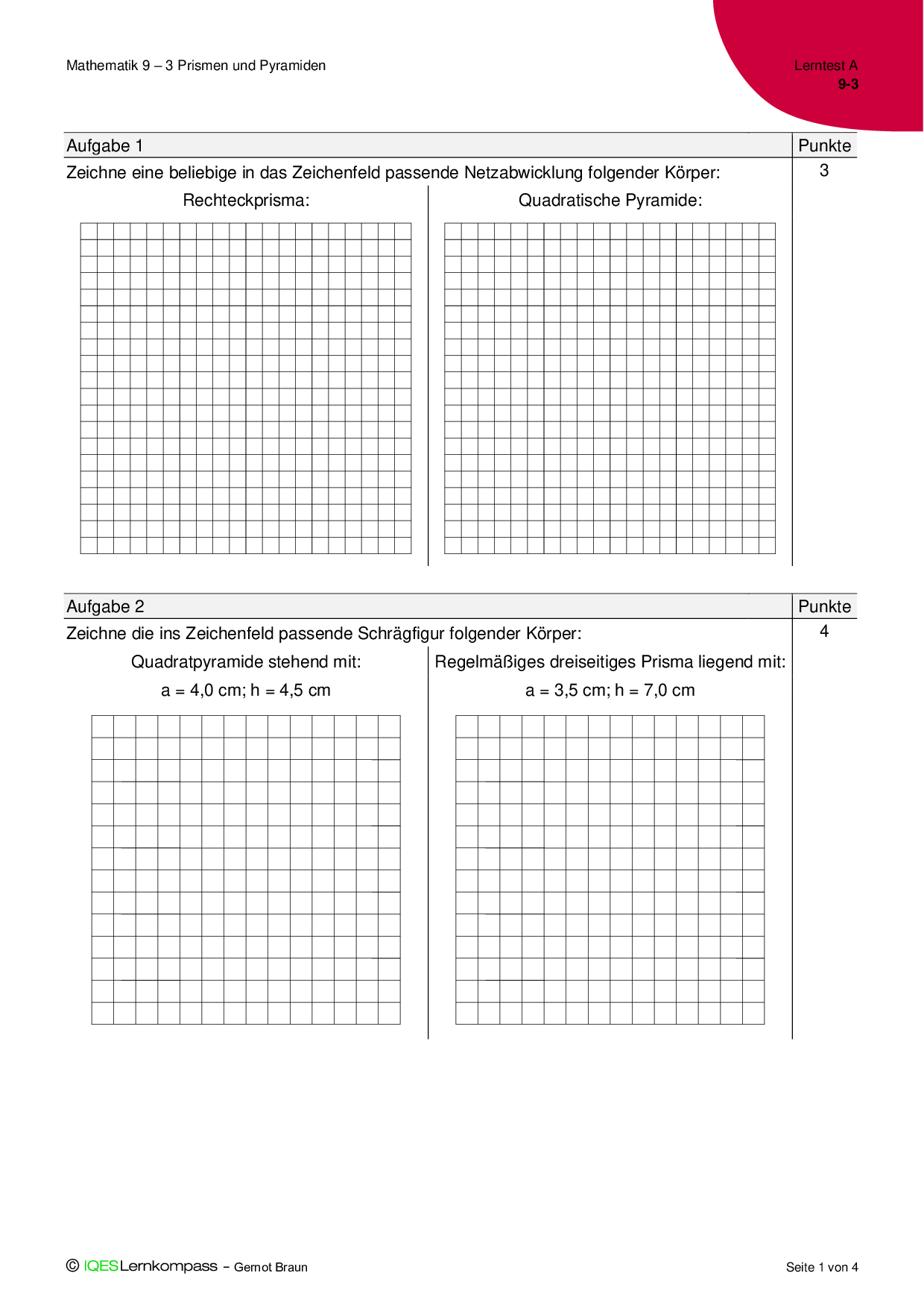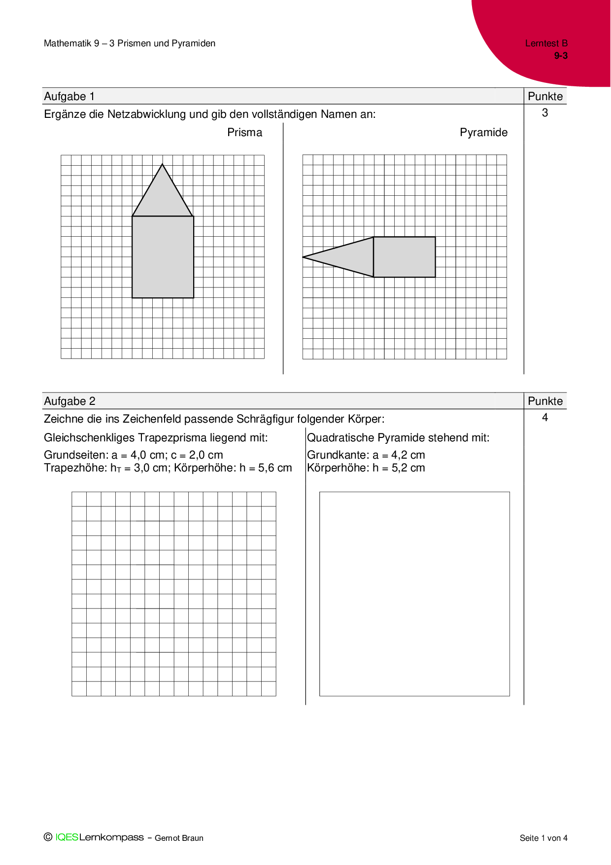 9.3 Prismen und Pyramiden - Aufgabenpool für Abschlusstests