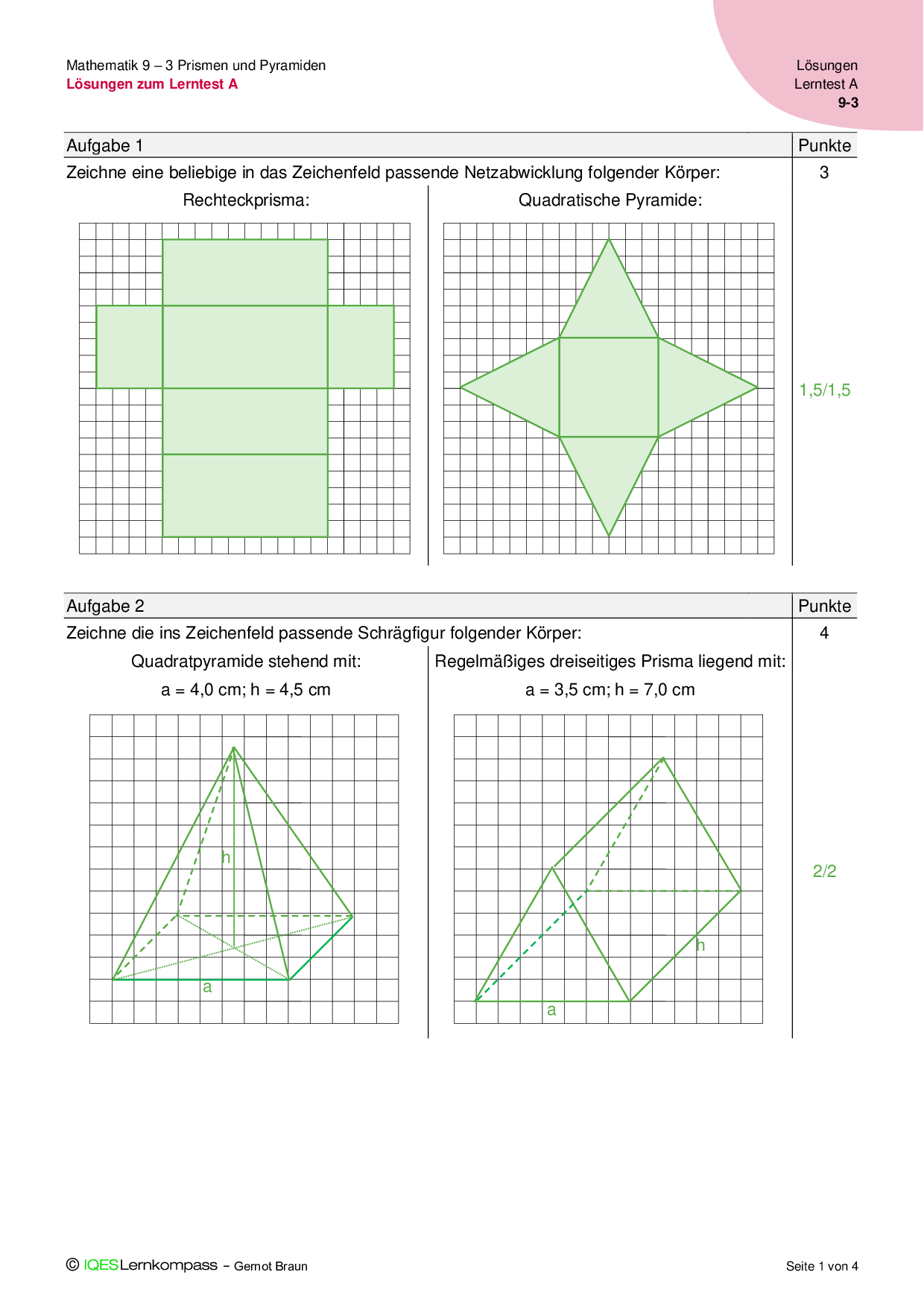 9.3 Prismen und Pyramiden - Lösungen zum Lerntest A