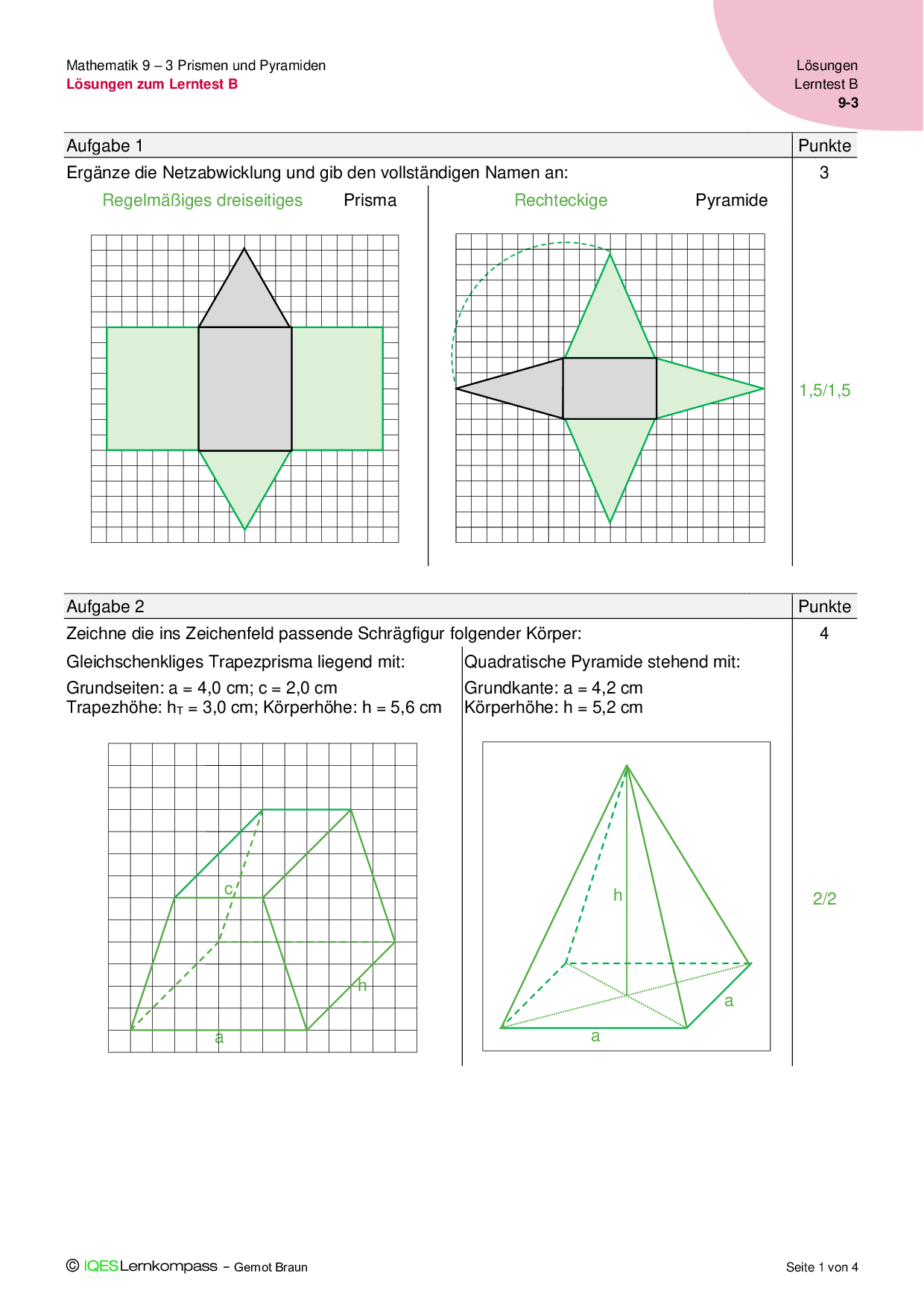 9.3 Prismen und Pyramiden - Lösungen zum Lerntest B