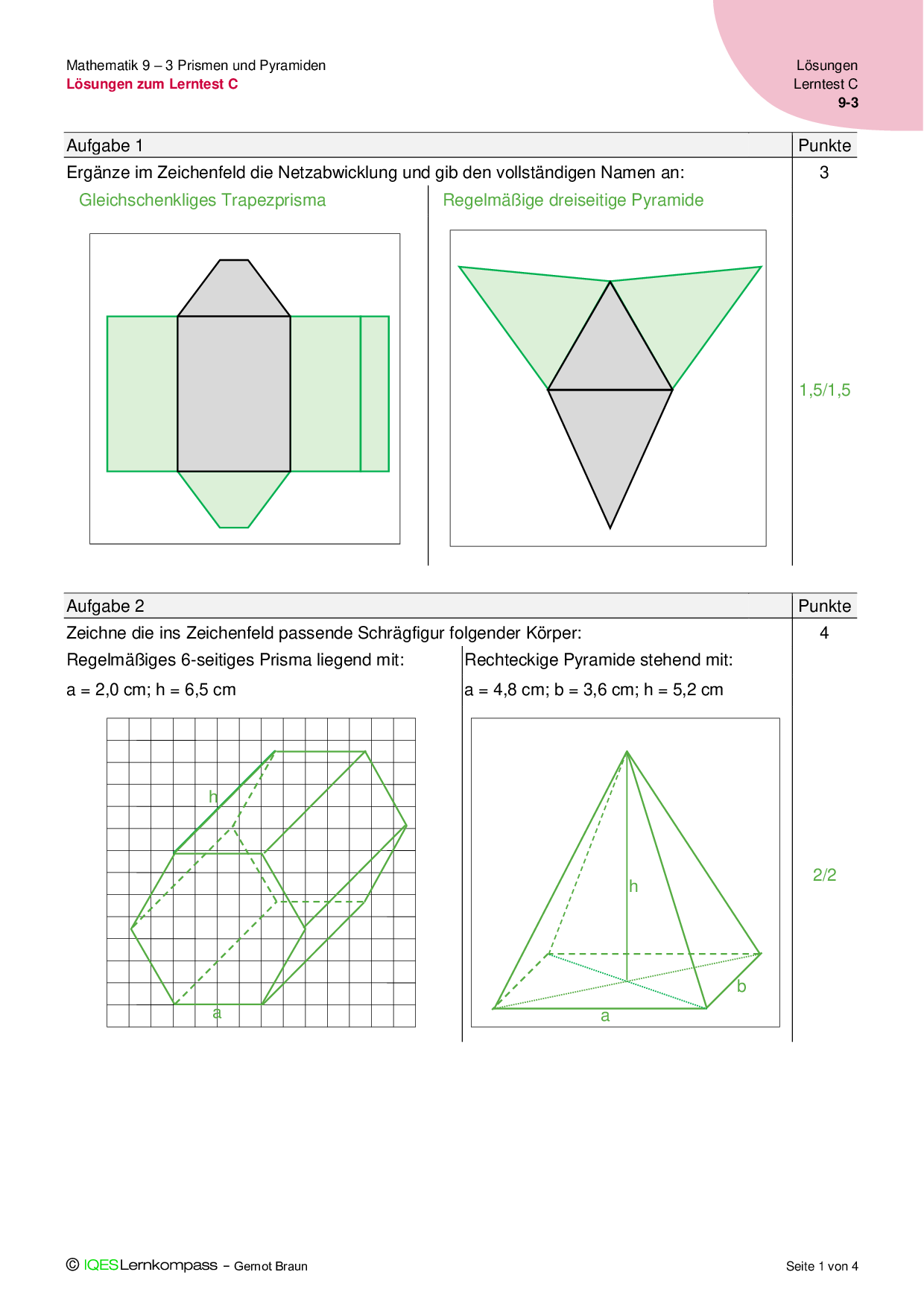 9.3 Prismen und Pyramiden - Lösungen zum Lerntest C