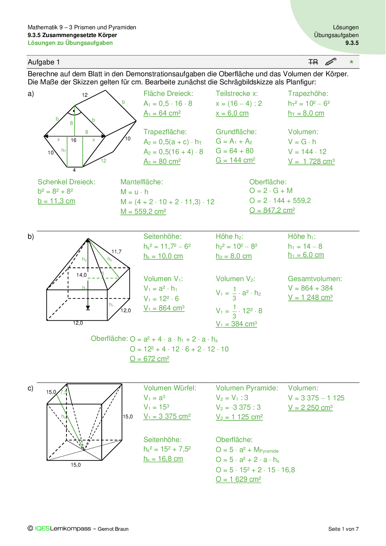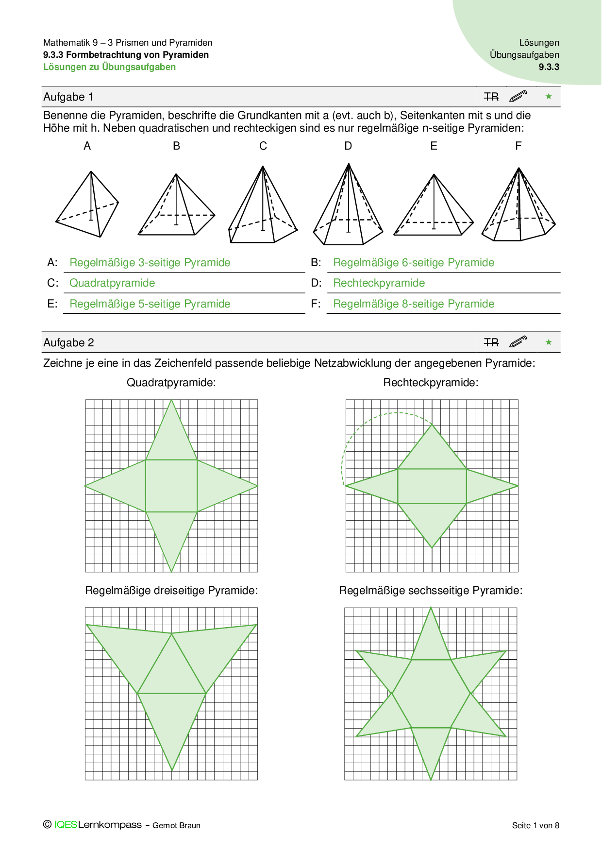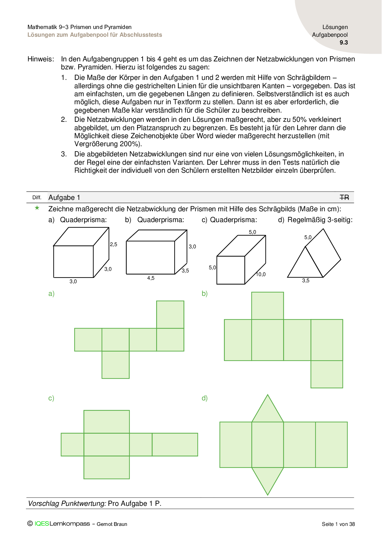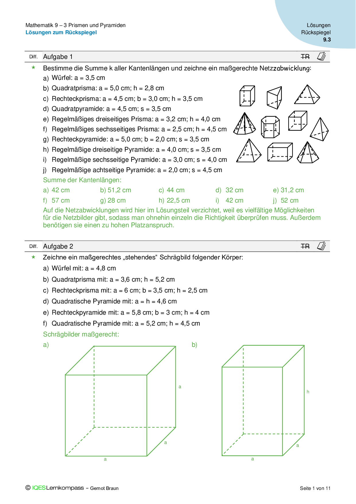 9.3 Prismen und Pyramiden - Lösungen zum Aufgabenpool für Abschlusstests