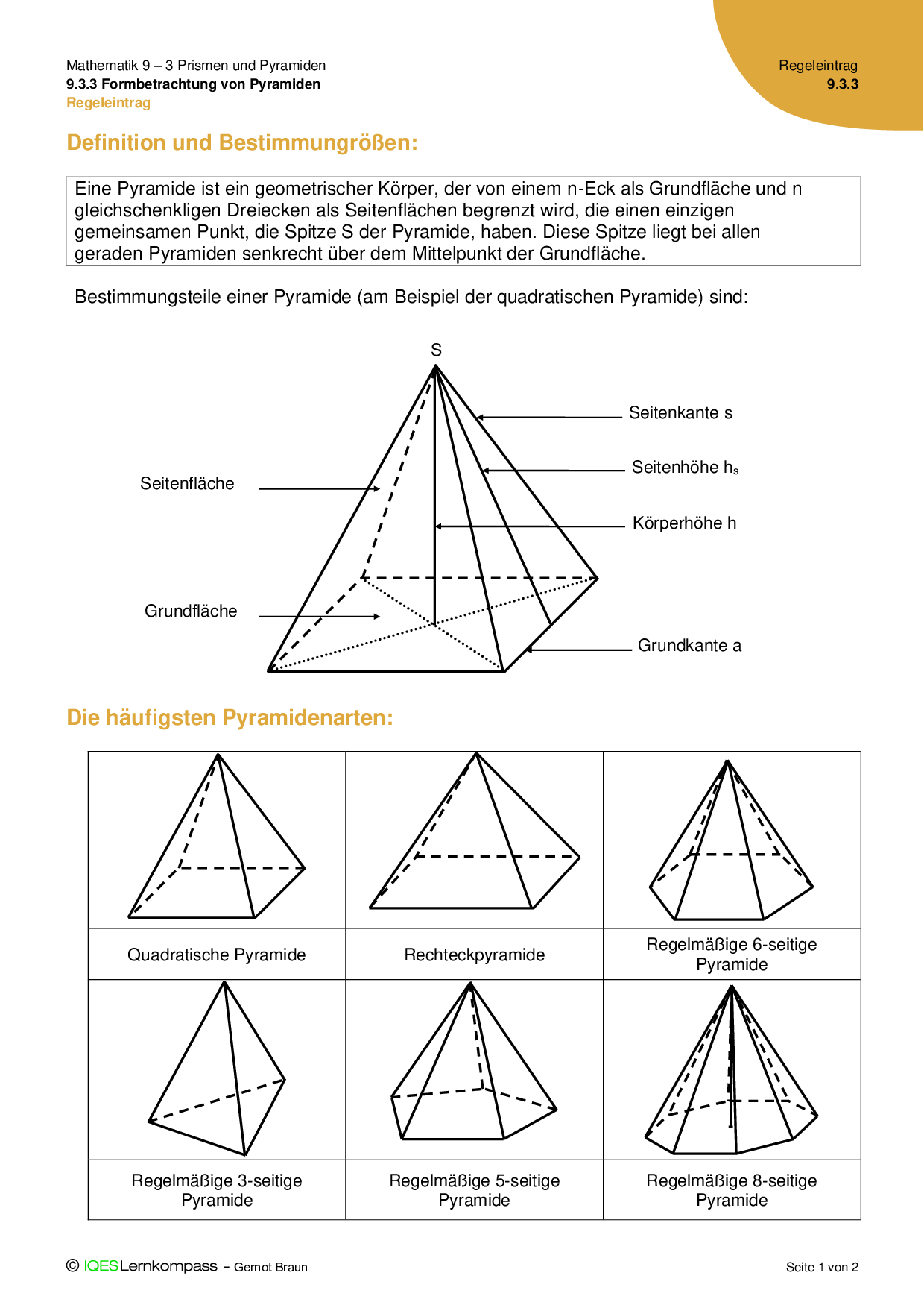 9.3.3 Formbetrachtung von Pyramiden - Regeleintrag